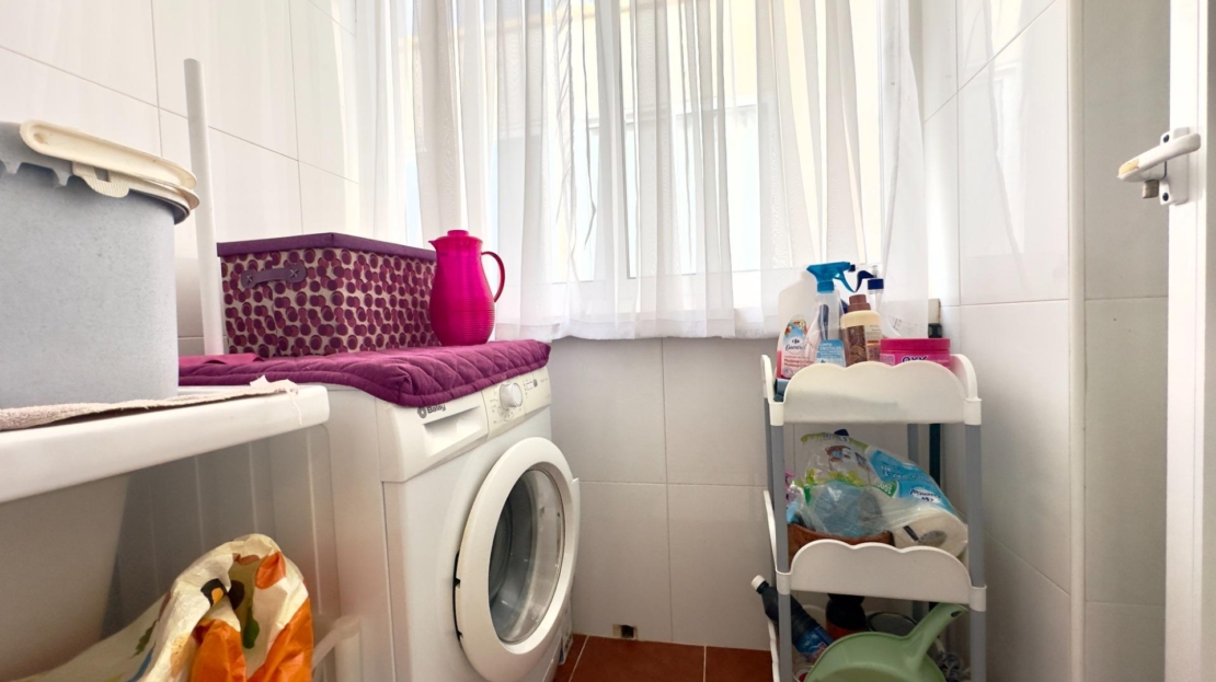 "value": "Bungalow en planta alta con solárium privado, piscina comunitaria con jacuzzi y vistas al mar.~Se vende acogedor bungalow en planta alta, ideal para disfrutar del clima mediterráneo durante todo el año. La vivienda cuenta con 2 dormitorios, 1 baño completo y una cocina americana integrada en un luminoso salón, creando un espacio cómodo y funcional. Dispone además de lavadero independiente y trastero, ofreciendo un práctico espacio de almacenaje.~~Desde el salón se accede a un balcón con vistas lejanas al mar, perfecto para relajarse al aire libre. En la parte superior, destaca su espectacular solárium privado de 39 m2, equipado con ducha, barbacoa y zona de fregado, ideal para disfrutar del sol y organizar reuniones con total privacidad.~~El residencial ofrece una cuidada piscina comunitaria con jacuzzi, rodeada de zona verde de césped y sombrillas, creando un entorno perfecto para el descanso y el ocio. Además, cuenta con club social, ideal para encuentros y actividades.~~Una vivienda ideal como residencia habitual, segunda vivienda o inversión, situada en un entorno tranquilo y con excelentes zonas comunes para disfrutar del estilo de vida mediterráneo.",