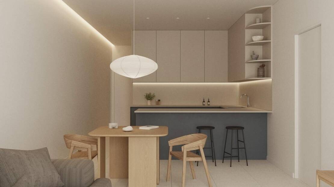 Choisissez entre des appartements 1 ou 2 chambres, chacun avec 2 salles de bains (dont une en suite). Les agencements ouverts sont conçus pour maximiser l'espace et la lumière naturelle, garantissant à la fois confort et fonctionnalité. Des finitions haut de gamme telles que des portes d'entrée sécurisées, des armoires encastrées avec des finitions textiles, des menuiseries en aluminium à rupture thermique et des volets motorisés dans le salon garantissent durabilité et style. Les cuisines et les salles de bains sont équipées d'appareils de haute qualité, avec des parois de douche et des miroirs intégrés. Climatisation préinstallée pour un confort tout au long de l'année.