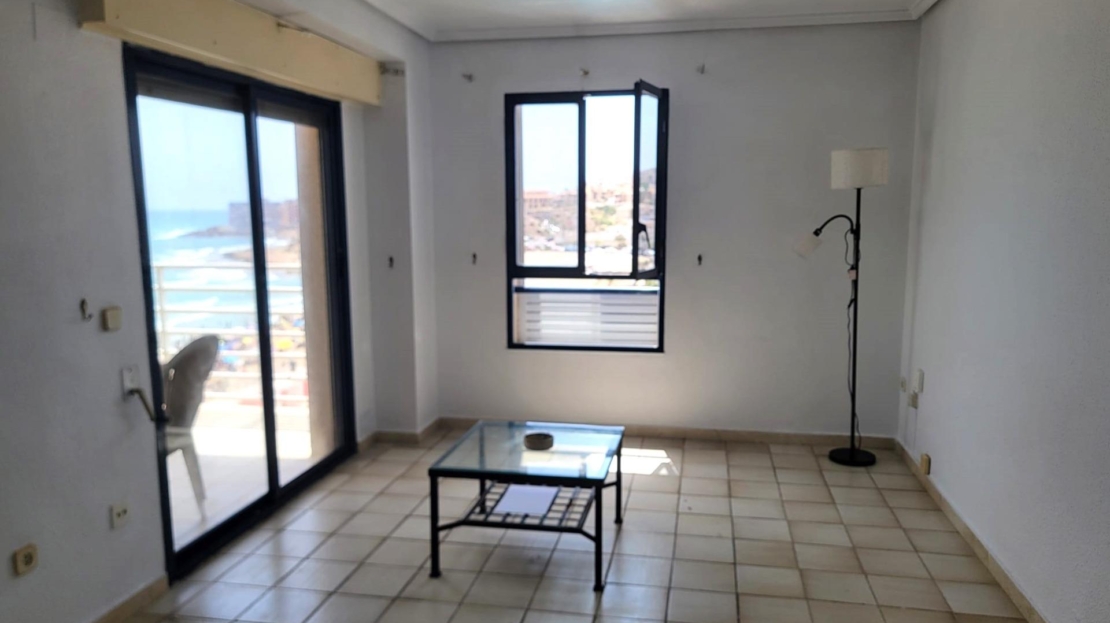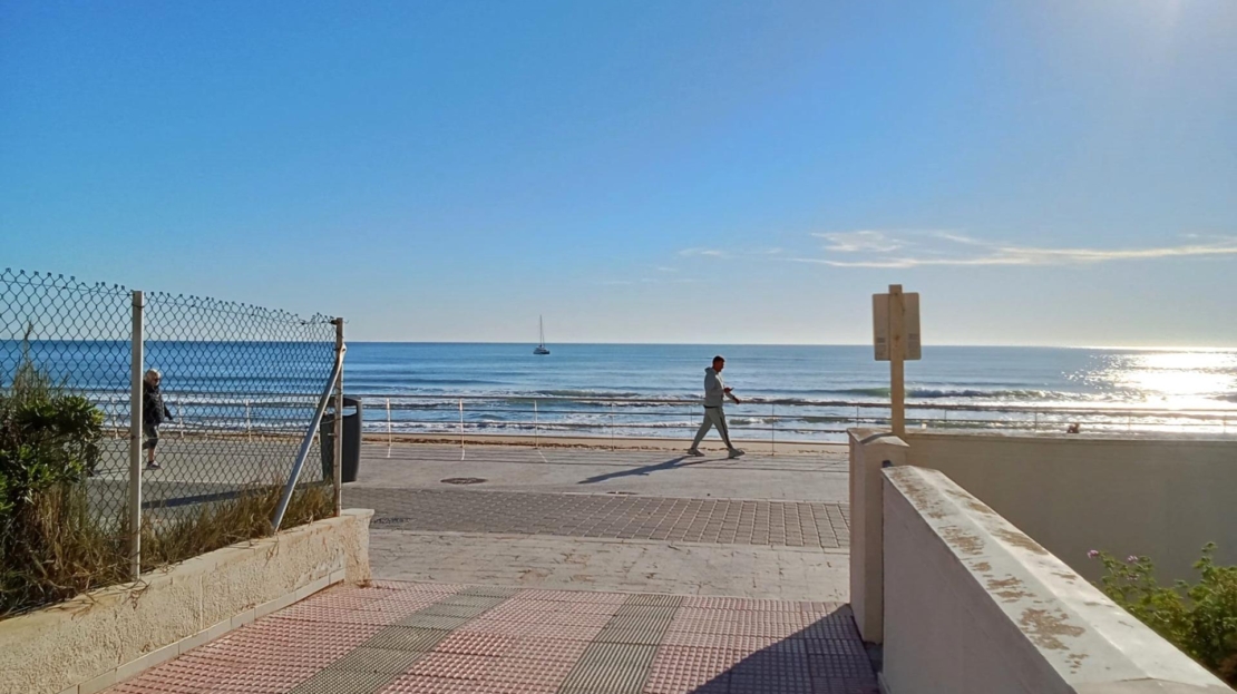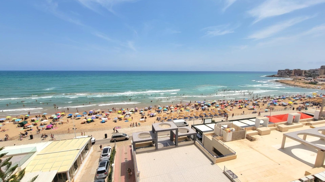 Corner Penthouse on the sixth floor, in original condition, with frontal and panoramic sea views, on the sea front of the splendid beach of La Mata! It consists of a living room with an open-plan kitchen with a terrace with sea views, two double bedrooms (main bedroom with an en suite bathroom), two bathrooms (with bathtubs) and an underground parking space in the same building. Furnished. Kitchen equipped with appliances. Built-in wardrobes in the bedrooms. Elevator in the same building. Facing South and East. With large community swimming pool and gardens and concierge. A luxury! with a privileged location, the sound of the waves and facing the immensity Mediterranean sea!