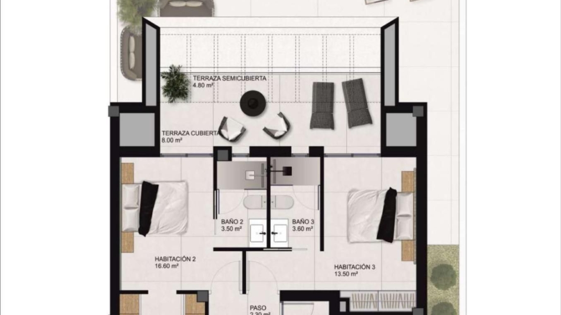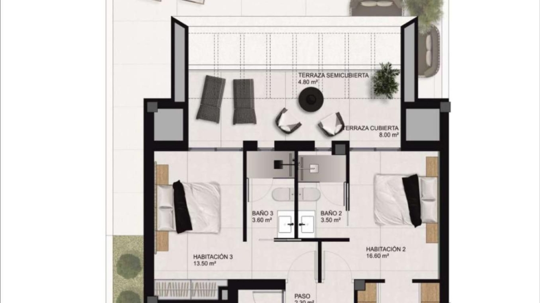 La propriété compte 3 chambres et 3 salles de bains, réparties sur une surface construite de 152m². Chaque coin de cette maison est conçu méticuleusement pour votre bien-être.