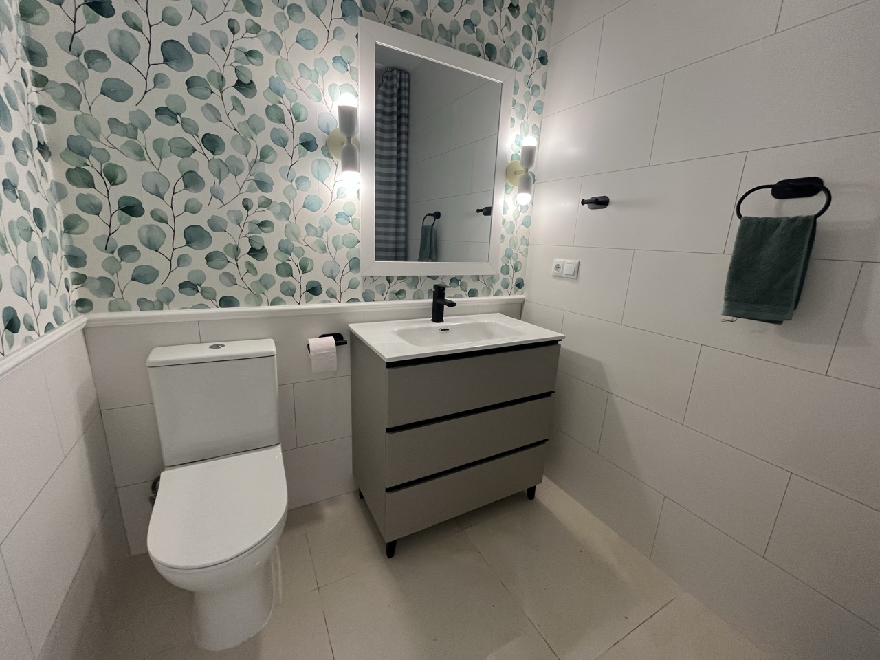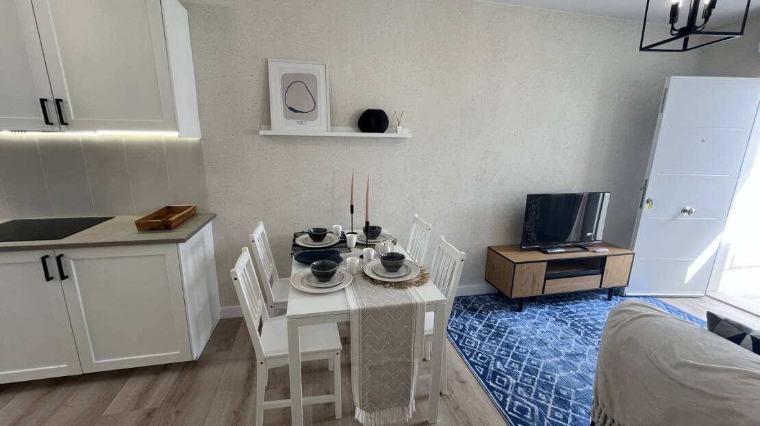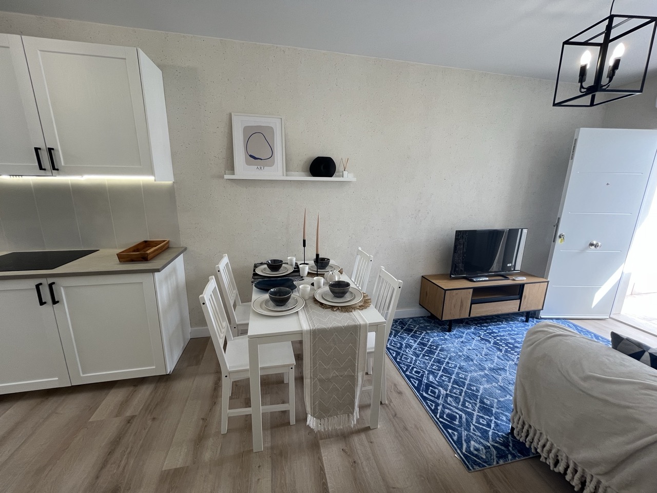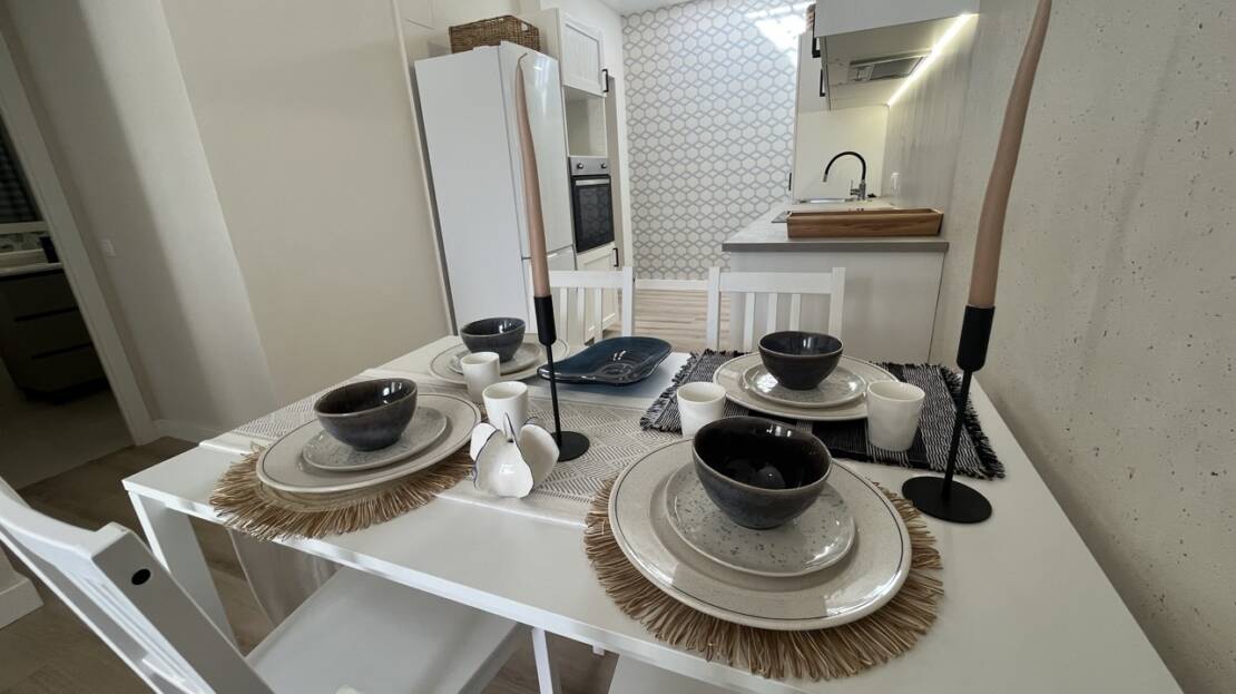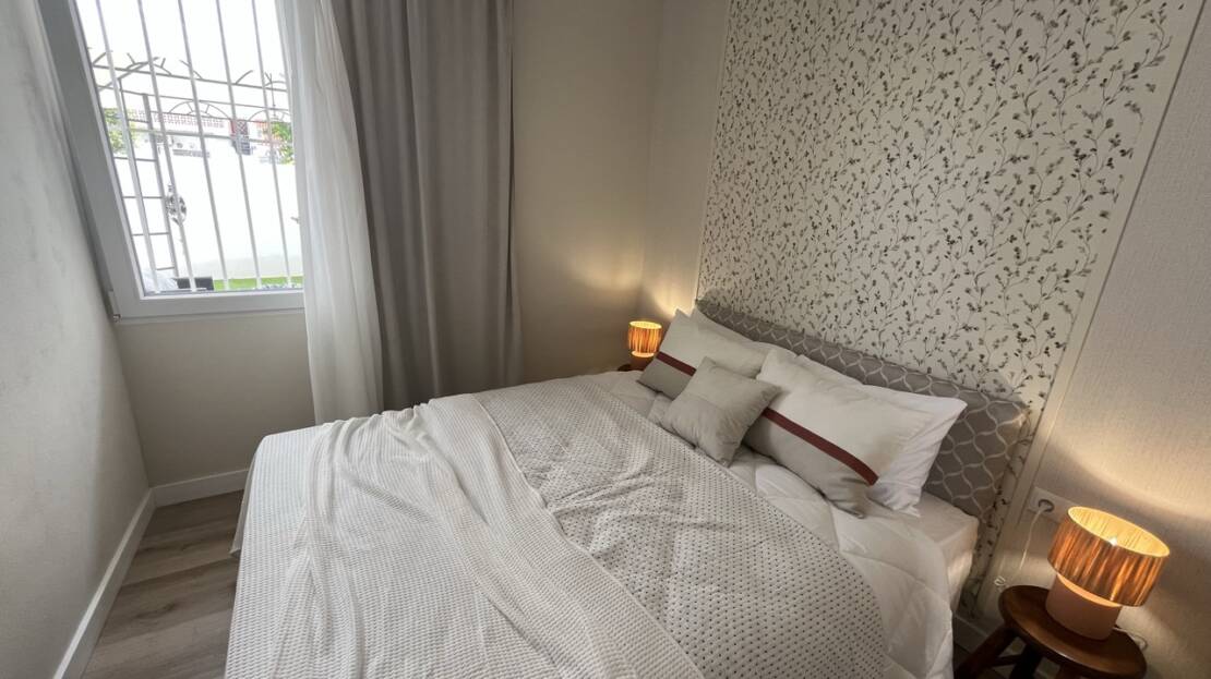 Maison mitoyenne rénovée sur un seul niveau avec patio privé de 33 m². Elle offre 43 m² construits, 2 chambres, 1 salle de bain, cuisine ouverte et salon avec accès direct au patio. Vendue meublée et équipée, prête à emménager.