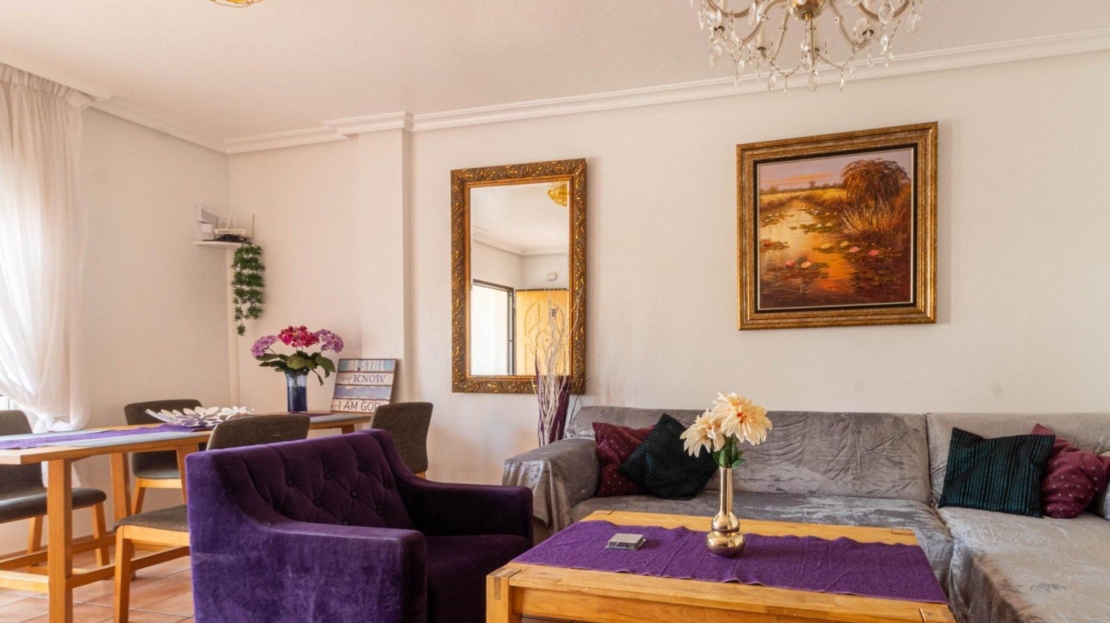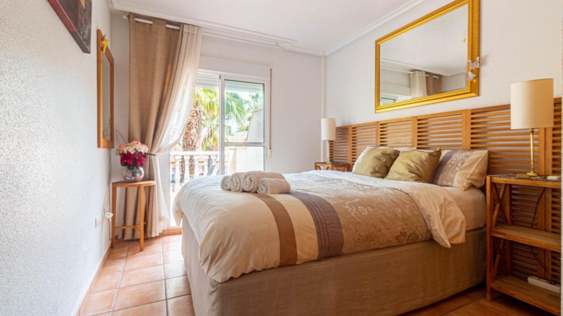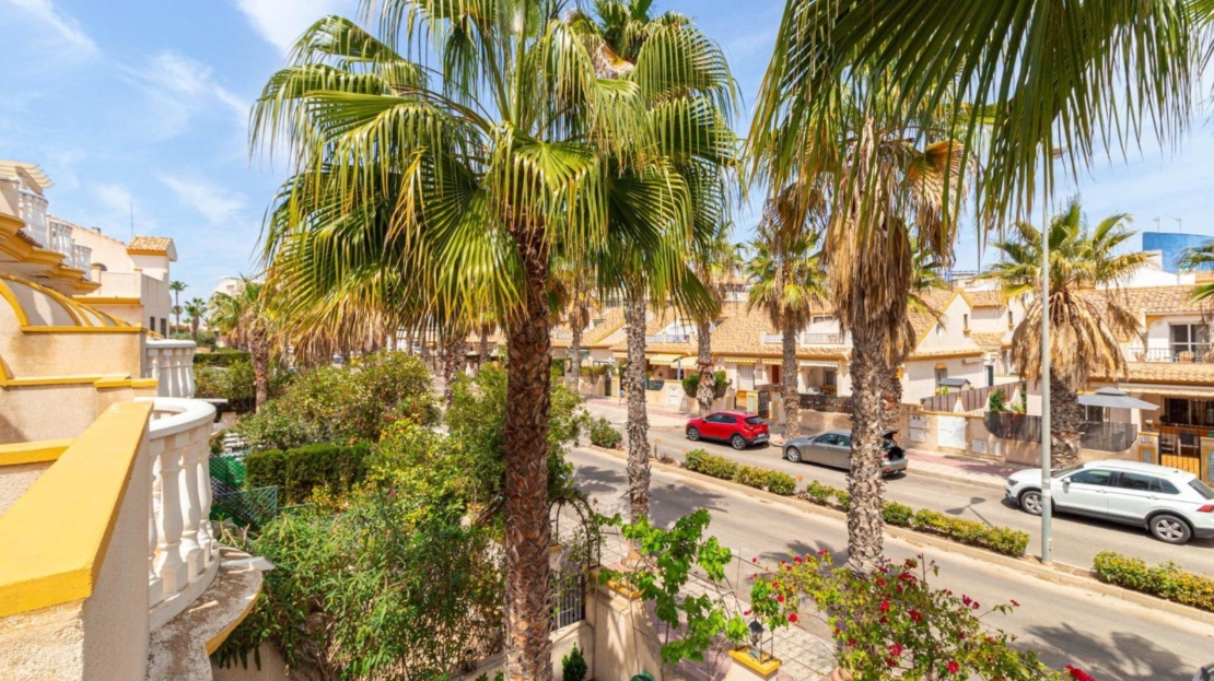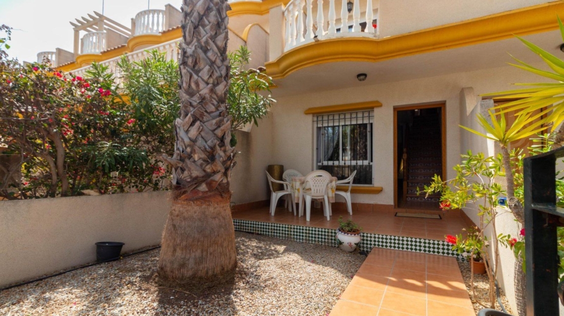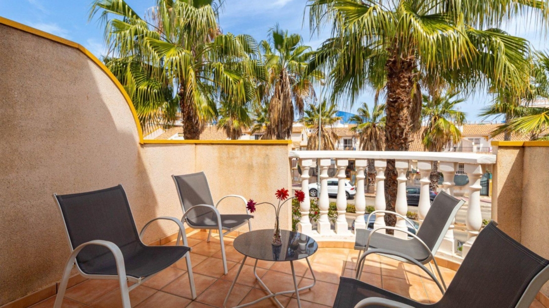 "value": "Este adosado en venta en el residencial Aldeas de Aguamarina, en Cabo Roig, es una verdadera joya en la Costa Blanca. Con licencia turística, esta propiedad cuenta con 3 dormitorios y 2 baños, lo que la convierte en un espacio perfecto para disfrutar de unas vacaciones o para vivir todo el año. ~~La vivienda dispone de una terraza, jardín y solarium, ofreciendo múltiples espacios al aire libre para relajarse, tomar el sol y disfrutar de las vistas laterales al mar. Rodeado de palmeras, este adosado ofrece un ambiente tropical y tranquilo que invita al descanso y la relajación.~~La ubicación es inmejorable, a un paso de todo tipo de servicios como tiendas, restaurantes y supermercados, lo que garantiza una vida cómoda y práctica. Además, la proximidad a la playa hace que sea fácil disfrutar del mar y del sol durante todo el año.~~La propiedad cuenta con aire acondicionado para mayor comodidad, y se entrega parcialmente amueblada, lo que facilita la mudanza y permite disfrutar de la vivienda de inmediato.~~Este adosado en el residencial Aldeas de Aguamarina es una oportunidad única para aquellos que buscan una propiedad lista para disfrutar en la hermosa Costa Blanca. No dudes en visitar esta propiedad y descubrir todas las comodidades y encantos que tiene para ofrecer. ¡Una verdadera joya en un entorno paradisíaco!",