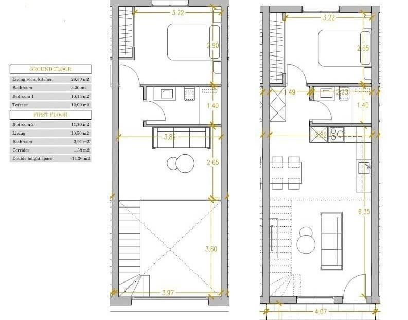 7 maisons de ville de 2 et 3 chambres avec accès à une piscine commune.