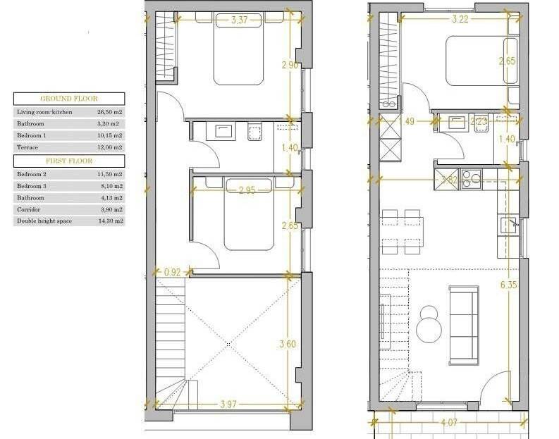 2 villas individuelles de 3 chambres et 3 salles de bains, chacune avec piscine privée.