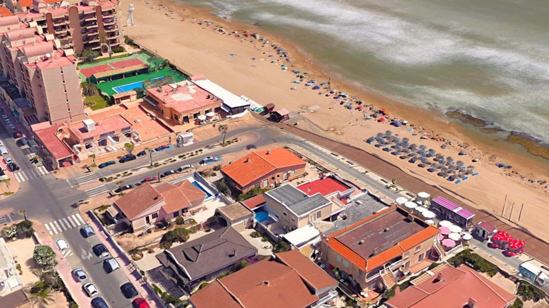 OPPORTUNITÉ UNIQUE EN PREMIÈRE LIGNE À LA MATA – MAISON AVEC TERRAIN DE 300 m² ET PERMIS DE CONSTRUIRE POUR UNE MAISON NEUVE PLUS GRANDE AVEC PISCINE ! Sur la prestigieuse Avenida de Los Europeos n° 1, directement en bord de plage à La Mata, se trouve cette magnifique maison récemment rénovée sur un terrain de 300 m². La maison, d'une superficie actuelle de 113 m², comprend 3 chambres, 1 salle de bain, un grand séjour, une cuisine séparée et un garage sous la maison. Et, il y a un permis de construire accorder pour une maison plus grande de 225 m2 avec 4 chambres, 3 salles de bains, terrasse sur le toit et grande piscine. Tous les permis sont en place et tous les frais ont déjà été payés ! Il ne s'agit pas seulement d'une maison de vacances, mais d'un investissement pour l'avenir, car la loi sur la protection du littoral (Ley de Costa) restreint la construction de nouveaux terrains non bâtis à proximité de la plage. Et c'est une opportunité unique de devenir propriétaire de l'une des moins de 20 villas qui se trouvent en première ligne à La Mata, l'une des plus belles plages de la côte. CARACTÉRISTIQUES PRINCIPALES : –Première ligne à Playa de la Mata, l'une des plus belles plages de la côte. –Terrain privé de 300 m2, actuellement avec une maison de plain-pied rénovée avec 3 chambres. –Permis de construire accorder pour une maison plus grande de 225 m² avec 4 chambres, 3 salles de bains et une terrasse sur le toit. –Permis de construire accorder pour une grande piscine (4 x 8 m). –Tous les permis sont en règle et tous les frais ont déjà été payés ! AUTRES AVANTAGES : –Garage privé au sous-sol. –Située au cœur du quartier de Los Europeos, à seulement 600 m de la place principale de La Mata, elle bénéficie d'un emplacement idéal. –Proche des supermarchés et très bonnes communications avec les bus de la ville de Torrevieja. –À seulement 5 km du centre-ville de Torrevieja, avec ses nombreux commerces et divertissement. –À seulement 40 km de l'aéroport d'Alicante (le 5e plus grand d'Espagne, avec des vols directs vers toute l'Europe). Construite en 1974, la maison est en très bon état, récemment rénovée et immédiatement habitable. Le terrain de 300 m² est situé à la limite de la zone de protection des plages publiques (DPMT) et est en partie couvert par la zone spéciale SP (établie en 2015), qui limite son utilisation et sa construction. Le permis de construire accorder tient compte de ces restrictions et tous les permis ont été payés. La maison est située dans le quartier de Los Europeos, au sud de La Mata, entre le grand parc « Parque del Molino de Agua » et la place centrale de La Mata. Dans le quartier, il y a de nombreux restaurants, cafés, pharmacies, un centre de santé et le centre de La Mata est à seulement 10 minutes à pied. Le centre de Torrevieja est à seulement 5 km environ (des bus réguliers s'y rendent). Et à Torrevieja, avec plus de 106 000 habitants et troisième plus grande ville de la province d'Alicante, il existe bien sûr une gamme complète de commerces, de divertissements, d'installations sportives, d'hôpitaux, d'écoles, mais aussi des bus directs pour l'aéroport d'Alicante (45 min). Ne manquez pas cette opportunité unique de devenir propriétaire de l'une des rares villas en bord de mer à Playa de la Mata, l'une des plus belles plages de la côte ! Contactez-nous dès aujourd'hui pour réserver une visite. Nous parlons votre langue !