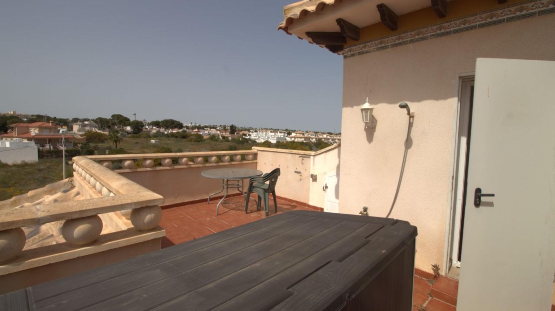 Découvrez ce charmant duplex situé dans le quartier très recherché de Lomas de Cabo Roig, à Orihuela Costa — un emplacement privilégié idéal pour profiter du style de vie méditerranéen toute l’année.La propriété offre une surface construite de 80 m² et est implantée sur un terrain de 100 m², offrant un équilibre parfait entre confort intérieur et espace extérieur. Elle dispose de 2 grandes chambres doubles et de 2 salles de bains complètes, et se présente en excellent état, prête à être habitée.Son orientation sud-ouest garantit une luminosité naturelle tout au long de la journée, créant une atmosphère chaleureuse et agréable dans toutes les pièces. La cuisine de style américain, entièrement équipée, s’intègre parfaitement au salon, offrant un espace moderne et fonctionnel.À l’extérieur, vous pourrez profiter d’une terrasse privée de 5 m² ainsi que de l’accès à une belle piscine communautaire entourée de jardins paysagers, idéale pour se détendre et profiter du soleil. La propriété comprend également une place de parking privée et 2 débarras, apportant un confort et un espace de rangement supplémentaires.En bonus, un petit véhicule type voiturette de plage est inclus dans le prix, parfait pour se déplacer facilement jusqu’à la mer.L’emplacement est idéal: à seulement 3 km de la mer Méditerranée et parfaitement desservi par les transports en commun à proximité. À quelques minutes, vous trouverez des centres commerciaux, des écoles et tous les services essentiels. Les prestigieux golfs de Campoamor et Las Ramblas sont également tout proches, parfaits pour les amateurs de golf.Informations complémentaires:* Charges de copropriété: 500 € / an