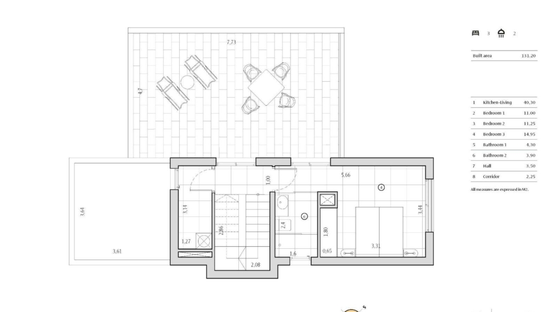 Superficie construite : 131 m².