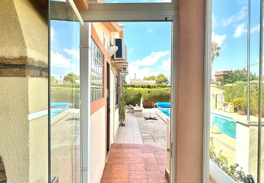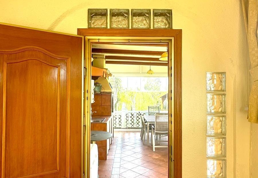 Une villa spectaculaire avec un grand terrain de près de 800 m², idéale pour ceux qui recherchent espace, intimité et confort. Cette propriété dispose d'une piscine privée chauffée, idéale pour profiter de la majeure partie de l'année, ainsi que d'un parking privé sur le terrain pouvant accueillir jusqu'à cinq véhicules. Le jardin, soigneusement aménagé, est agrémenté de deux pergolas créant d'agréables espaces ombragés et relaxants. Une magnifique terrasse vitrée avec barbecue est également à votre disposition, idéale pour se retrouver en famille ou entre amis en toute saison. La maison, de plain-pied, dispose d'une cuisine séparée entièrement équipée, spacieuse et fonctionnelle, avec un coin repas. Le salon principal, très spacieux et lumineux, est agrémenté d'une agréable cheminée qui réchauffe l'hiver. L'espace nuit comprend trois chambres doubles, dont une avec salle de bain attenante. La maison dispose également de deux salles de bain complètes supplémentaires, portant le total à trois. La propriété comprend également un garage fermé, gage de confort et de sécurité. En bref, il s'agit d'une propriété unique, entièrement équipée, aux intérieurs et extérieurs spacieux, conçue pour être appréciée toute l'année avec un maximum de confort et d'intimité. Idéale comme résidence principale ou secondaire.