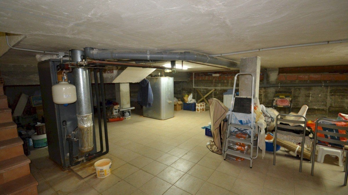 Currently, the ground floor comprises a grand entrance, a separate kitchen, a spacious living-dining area, 1 full bathroom, a laundry room, and a bedroom. The first floor hosts 6 bedrooms and 3 bathrooms, while the solarium floor offers 1 bedroom and 1 bathroom, along with a large southeast-facing terrace.