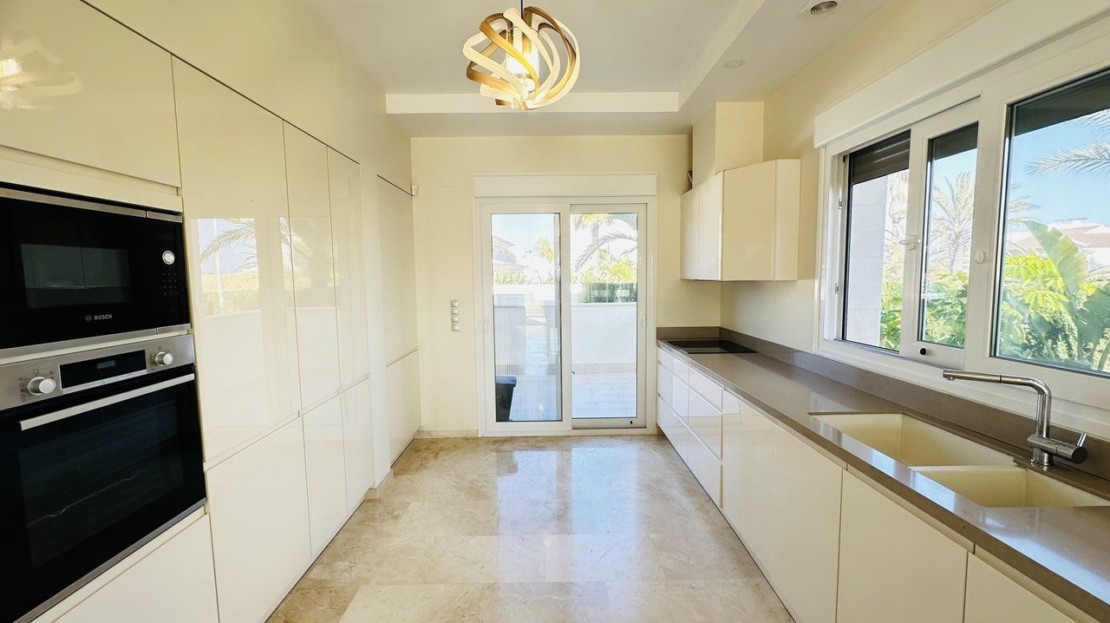 This stunning and modern 5 bedroom, 4 bathrooms detached villa commands a fantastic position in the very popular area of La Zenia, just 100 metres from the beautiful blue flag beach. The area features a huge selection of amenities, including the very impressive Zenia Boulevard shopping centre, with over 150 shops and a selection of good restaurants.Recently built and completed in 2023, this very stylish villa offers spacious rooms throughout, with wonderful outdoor space to enjoy the wonderful Mediterranean climate.The ground floor comprises an entrance hallway, leading into to fabulous living room with a dining area and an open-plan fully fitted kitchen with an island.