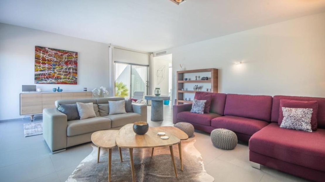 This stunning and spacious 4 bedroom detached villa is on a fantastic large, private plot in Las Colinas Golf Resort and Country Club, the most exclusive and prestigious golf resort in Costa Blanca with excellent facilities, including a driving range, 24 hour security, a spa, a beautiful club house and golf shop, a convenience store, and a choice of restaurants on the resort itself. This immaculate modern villa is cleverly divided into 4 areas connected by a hallway with huge windows, which offers privacy to each of the 4 bedrooms. In one area you will find an open plan, sleek kitchen and dining area, storage and washing room as well as a separate toilet for guests. The living room offers gorgeous views towards the terrace, large well maintained garden and swimming pool, with direct access from the living room. On the ground floor you will find 3 double bedrooms, each with their own private en-suite bathroom. On the first floor you have the benefit of privacy from guests with the impressive master bedroom with en-suite bathroom. This property has to been seen to be fully appreciated, and is light and bright with the huge windows taking advantage of the fabulous views. For your comfort and enjoyment all year round, this highly desirable villa comes with fully integrated hot and cold air conditioning throughout, as well as the great benefit of the swimming pool being heated! It is located within a 15 minute drive of a range of other perfectly maintained golf courses such as Campoamor, Villamartin and Las Ramblas and nearby blue flag beaches, at Cabo Roig, La Zenia and Playa Flamenca to name a few, and the American-style open air shopping mall Zenia Boulevard, which is open from 10am - 10pm all year round.