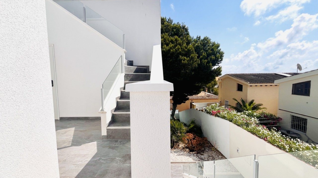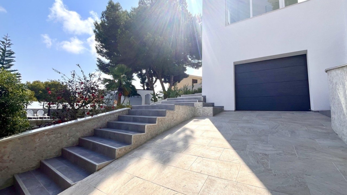 This impressive 6-bedroom, 3-bathroom detached villa is perfectly positioned in the highest area of Los Balcones, offering spectacular, uninterrupted views of the salt lakes and surrounding mountains. Set on a generous 608m² private plot, the home combines space, privacy, and Mediterranean charm, making it ideal as a family residence, luxury holiday home, or investment property.The villa offers 286m² of beautifully maintained living space distributed across two floors, with a private solarium and the convenience of an internal elevator connecting the garage to every level of the home. The ground floor welcomes you with a bright, spacious living room featuring soaring ceilings, expansive windows that frame the natural surroundings, and a cozy fireplace. A fully equipped independent kitchen complements the main living areas, alongside four bedrooms and two bathrooms on this level — ideal for family or guests.Upstairs, you’ll find two further bedrooms, including one with direct access to a private terrace, perfect for enjoying sunsets and panoramic views. This floor also offers a third bathroom and a flexible open space ideal as a reading room, office, or study.Outdoors, the villa’s generous grounds feature a private 8x4m swimming pool with LED lighting, a built-in barbecue area, and multiple terraces for dining and relaxation. The property is finished to a high standard throughout, benefiting from central gas heating and air conditioning to ensure year-round comfort.This is a rare opportunity to secure a substantial detached villa with outstanding views in one of Orihuela Costa’s most established residential areas, close to shops, restaurants, golf courses, and the coast, yet offering peace, privacy, and exceptional living space.