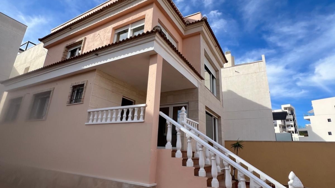 Nous vous présentons ce spectaculaire chalet indépendant situé dans le quartier privilégié de Villamartín-Las Filipinas, Orihuela Costa. Avec une superficie construite d'environ 121 m² et un grand terrain de 280 m², cette propriété est idéale pour ceux qui recherchent confort et espace. Le bien dispose de quatre chambres doubles parfaitement distribuées, ainsi que de deux salles de bains complètes et d'un toilettes garantissant intimité et fonctionnalité. De plus, il met en avant son propre sous-sol d'environ 75 m², offrant de multiples possibilités comme salle de jeux ou bureau supplémentaire. La maison est en bon état général et dispose également d'un parking privé ainsi que d'une terrasse pour profiter du climat méditerranéen. Son emplacement stratégique permet d'être à seulement cinq kilomètres de la mer Méditerranée, offrant un accès facile à de charmantes plages sans renoncer au confort résidentiel. Cette offre inclut la possibilité de réaliser une piscine privée selon les préférences du nouveau propriétaire ; un luxe supplémentaire parfait pour le plaisir familial tout au long de l'année.