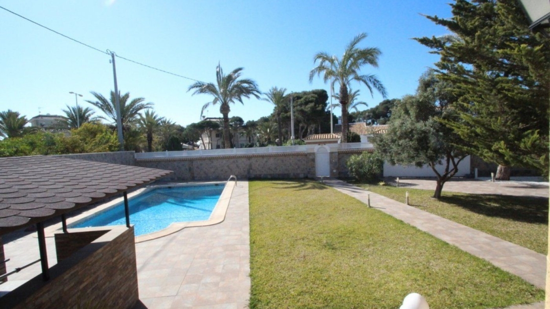 Villa de luxe à Cabo Roig avec piscine privée, à 200 mètres de la plage. Terrain de 1 400 m2 dans lequel se trouvent une piscine privée et un beau jardin, coin repas avec pergola et jumper pour les enfants. La maison est sur deux étages avec une surface habitable de 440 m2. Il est prévu pour le maximum d'intimité de ses habitants - il y a 5 chambres et 5 salles de bain. Au rez-de-chaussée se trouve une très grande pièce principale, une cuisine avec un îlot et un coin repas, avec accès à la terrasse extérieure, une buanderie. Il y a aussi 3 chambres et 3 salles de bain (dont 2 en suite avec leur salle de bain). L'étage supérieur est composé de deux petits appartements indépendants : l'un avec sa propre cuisine, un petit salon, une chambre à 2 lits et une salle de bain attenante ; et une autre composée de la chambre parentale avec accès à la grande terrasse, une salle de bain, un séjour - dressing.. La villa dispose de la climatisation dans toute la maison, 4 terrasses, Internet, TV Internet, vidéosurveillance, système d'alarme, parking pour 4-6 voitures, piscine de 10 x 4,5m2.