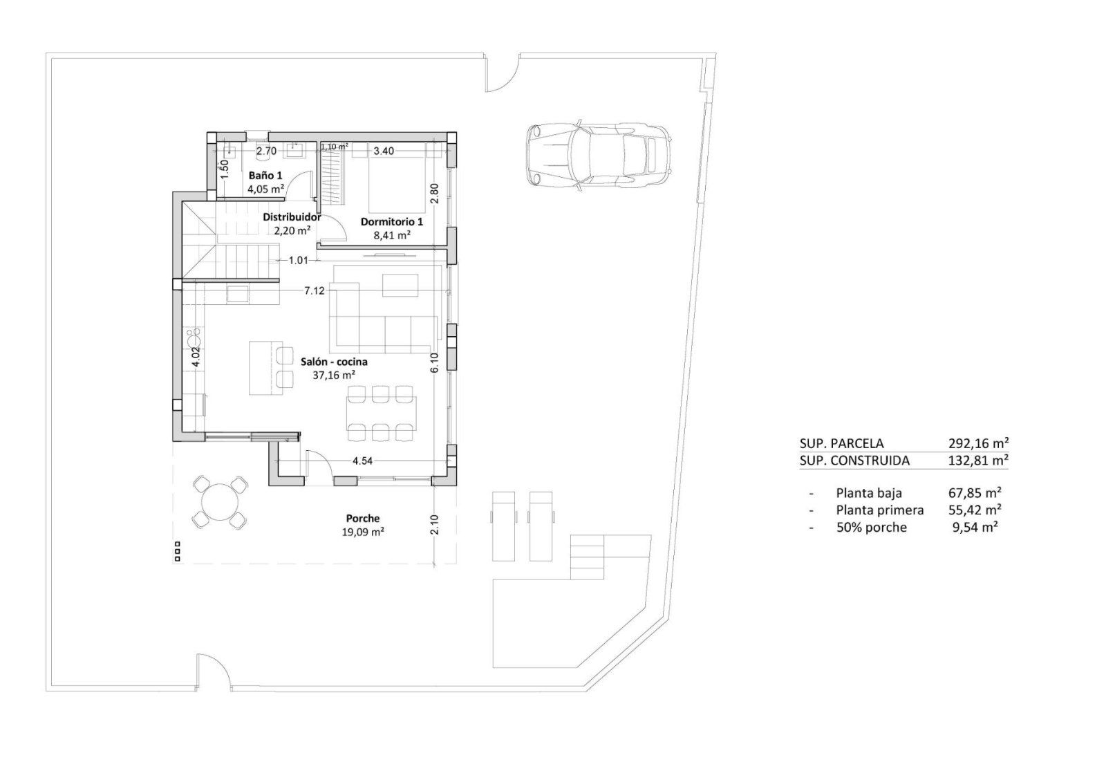 Villa neuve dans un complexe résidentiel avec piscine commune à Torre de la Horadada situé à 800m de la plage.
