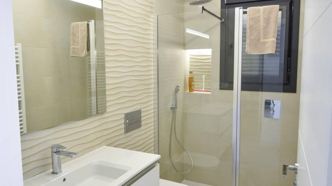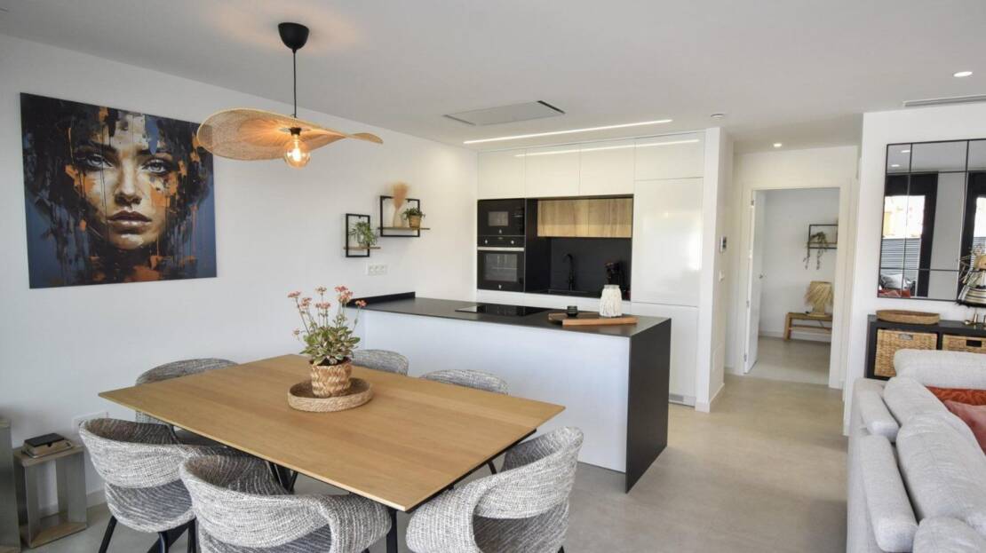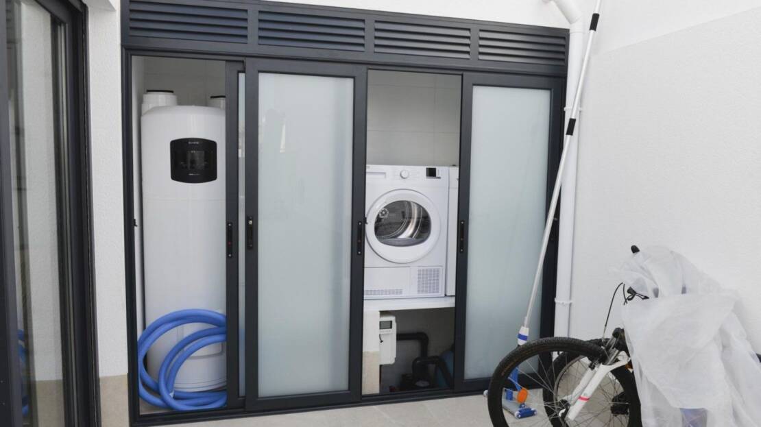Les grandes fenêtres du salon donnent un accès direct à la piscine et inondent l'intérieur de lumière naturelle. Les panneaux solaires et l'air conditionné préinstallé garantissent un confort moderne et durable. Les appareils électroménagers de Balay (plaque à induction, four, micro-ondes, hotte aspirante, réfrigérateur, lave-vaisselle intégré et lave-linge) facilitent l'emménagement.
