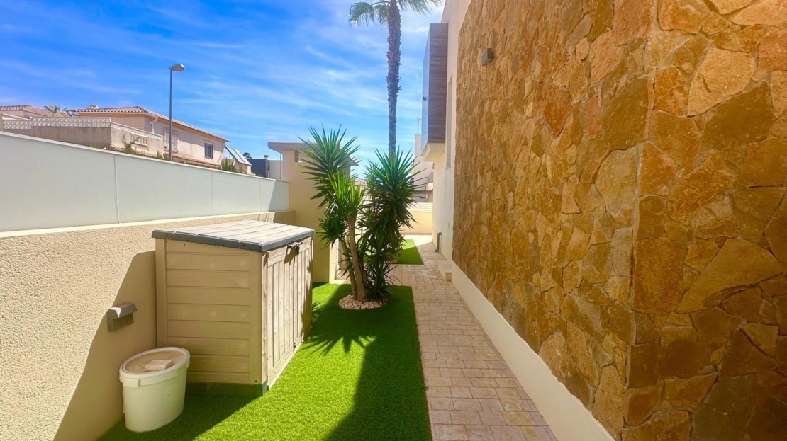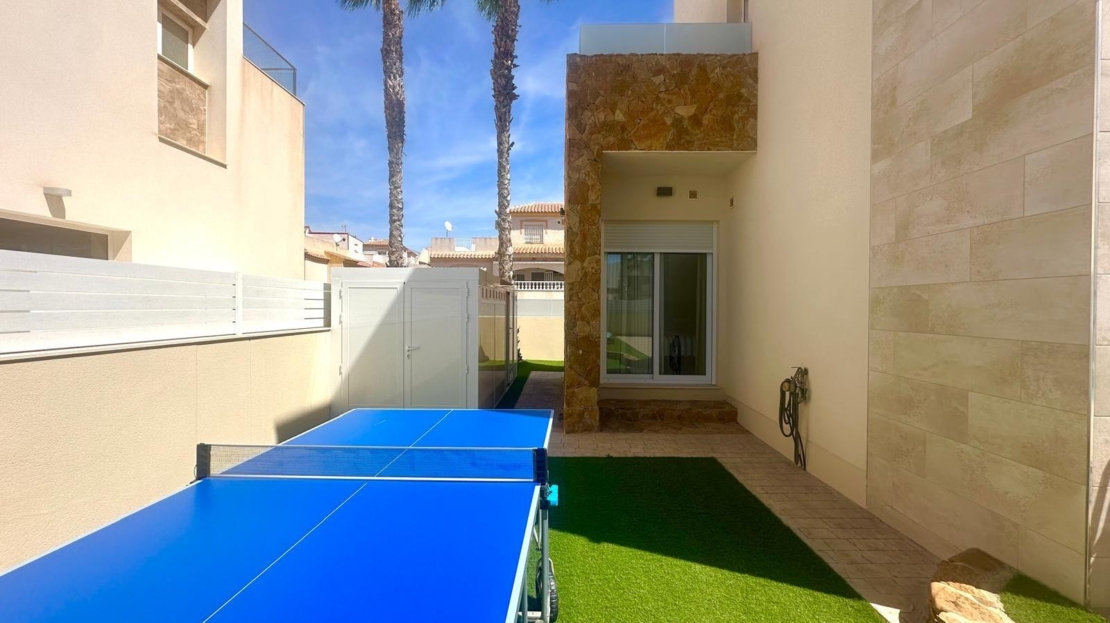 Villa avec piscine privée à Playa de los Locos – Torrevieja, à 400 mètres de la mer Nous vous présentons cette magnifique villa individuelle située dans l'un des quartiers les plus prisés de Torrevieja, à seulement 400 mètres de Playa de los Locos. Une maison unique alliant confort, espace et espaces extérieurs, idéale pour profiter du climat méditerranéen toute l'année. Agencement et caractéristiques Dès l'entrée, vous découvrirez un grand jardin avec piscine privée, idéal pour se détendre et passer du temps en famille, ainsi qu'une place de parking privée pour votre confort quotidien. L'extérieur est complété par une pergola, idéale pour l'ombre et un coin repas en plein air. Au rez-de-chaussée, la maison comprend : Un salon-salle à manger spacieux et lumineux, conçu pour créer une atmosphère chaleureuse. Une chambre au rez-de-chaussée, très pratique pour les invités ou ceux qui préfèrent éviter les escaliers. Une salle de bain avec douche moderne et fonctionnelle. Une cuisine séparée avec accès direct à la véranda, qui communique avec l'espace extérieur, est idéale pour des réunions conviviales et des repas en plein air. Au deuxième étage, nous trouvons : Deux chambres doubles en suite, chacune avec sa propre salle de bain privée, offrant intimité et confort à tous les membres de la famille. Accès à une terrasse privée, idéale pour profiter de la vue et de l'air frais. Enfin, la maison dispose d'un solarium à l'étage, un espace supplémentaire offrant de multiples possibilités : espace détente, solarium privé ou coin pour les fêtes. Situation et environnement La propriété bénéficie d'un emplacement stratégique, à quelques minutes à pied de la Playa de los Locos et à proximité des services essentiels tels que supermarchés, restaurants, pharmacies et transports en commun. Le tout dans un quartier calme et parfaitement relié au centre de Torrevieja. En résumé, cette villa est une opportunité exceptionnelle pour ceux qui recherchent une maison spacieuse avec piscine privée et toutes les commodités dans l'une des zones côtières les plus attrayantes de la Costa Blanca.