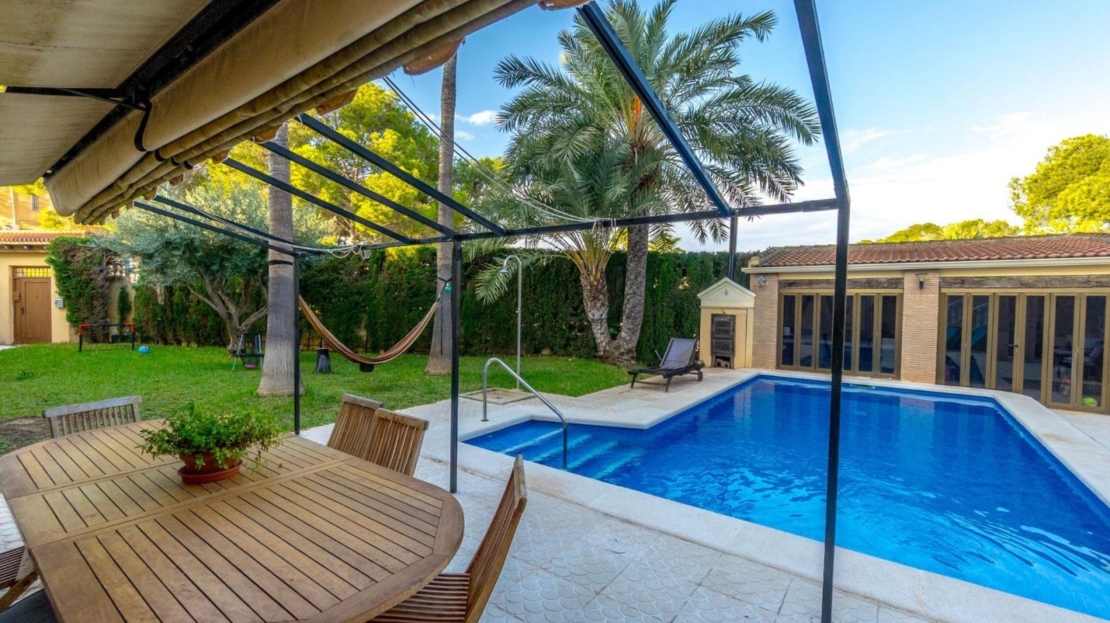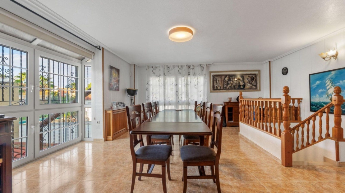 Villa indépendante avec piscine privée et grand terrain à Los Balcones Villa indépendante avec grand terrain, piscine privée et espace bien-être, idéale pour en profiter tout au long de l’année. La maison offre une surface construite d’environ 200 m² sur un terrain de plus de 800 m², située dans la prestigieuse urbanisation de Los Balcones, un quartier calme et bien desservi de Torrevieja. Elle se compose de trois chambres, trois salles de bains complètes, un vaste salon lumineux et une cuisine indépendante. Toutes les pièces disposent du chauffage par radiateurs avec chaudière au fioul et de la climatisation par splits. À l’extérieur, la propriété dispose d’un grand jardin avec piscine privée, d’une véranda vitrée idéale pour l’hiver, ainsi que d’un espace sauna, parfait pour la détente et le confort. Le garage fermé offre une capacité pour deux véhicules. Une propriété complète, soignée et offrant intimité, espace et excellentes prestations, idéale comme résidence principale ou maison de vacances.