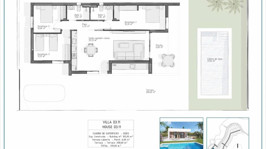 Cette nouvelle phase comprend 17 villas de haute qualité, avec un choix de maisons de 3 ou 4 chambres et 2 ou 3 salles de bains complètes sur un seul étage pour plus de confort.