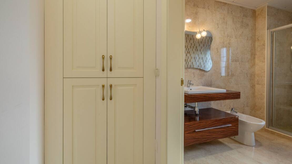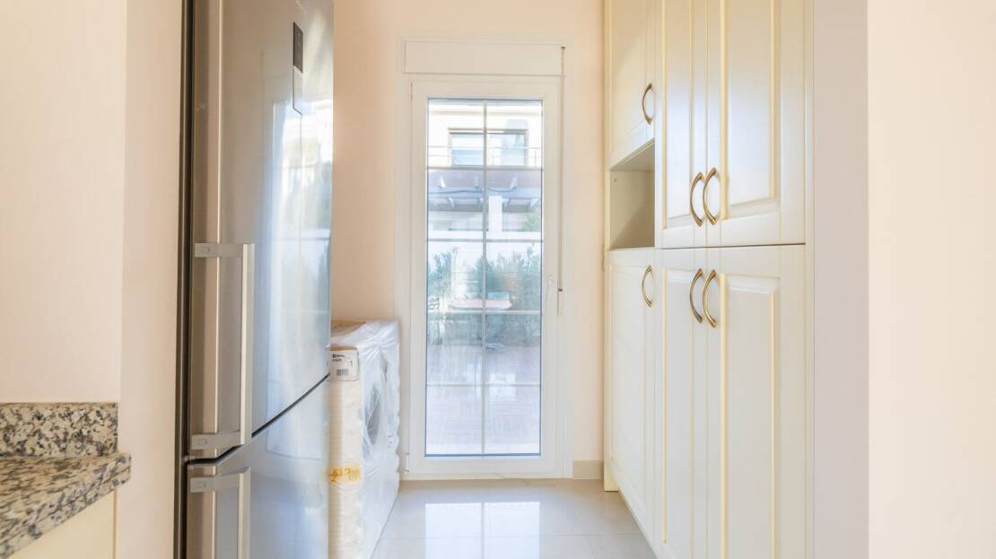 Au rez-de-chaussée, vous trouverez un spacieux salon-salle à manger avec cheminée, une cuisine ouverte entièrement équipée, un système de chauffage centralisé, un débarras et un solarium.