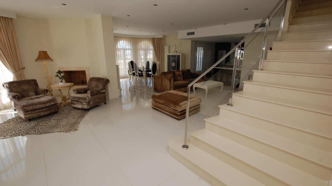Le cœur de la maison est un vaste salon, couronné d’une cheminée qui apporte chaleur et distinction. Cinq chambres spacieuses et quatre salles de bains garantissent espace et intimité à toute la famille. La grande cuisine entièrement équipée ravira les gourmets.Luxe et divertissement :