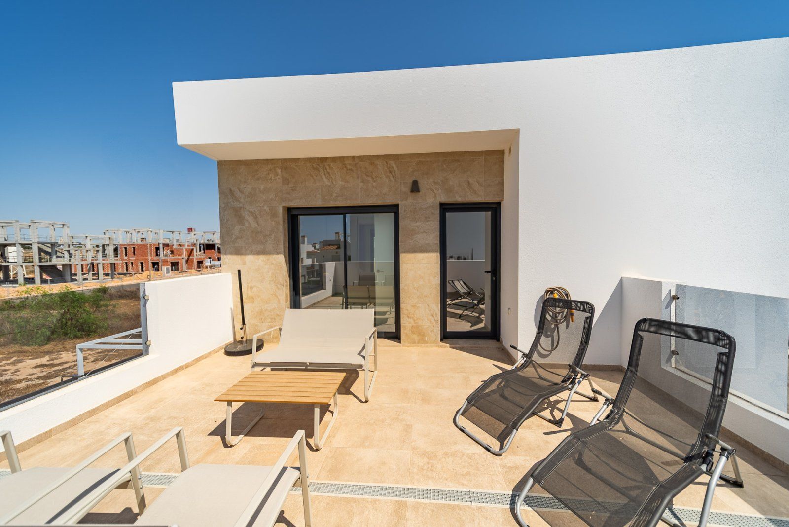 Villa moderne répartie sur deux étages, située dans une résidence privée et calme à Ciudad Quesada. La propriété comprend 3 chambres, 2 salles de bains complètes et 1 toilette invités. Le rez-de-chaussée dispose d’un spacieux salon-salle à manger avec cuisine américaine, d’un WC invités et d’une chambre principale avec salle de bains en suite.