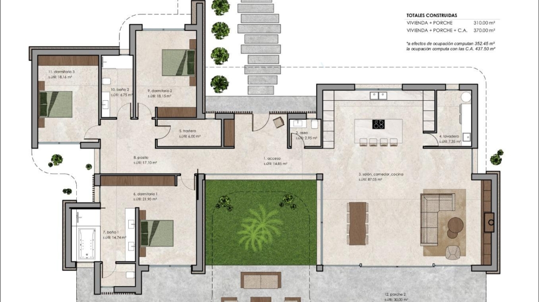 Toutes les villas sont construites avec des matériaux de haute qualité et comprennent une piscine privée de 8 mètres sur 4, une cuisine entièrement équipée avec appareils électroménagers et un système de climatisation complet doté de la technologie Airzone.