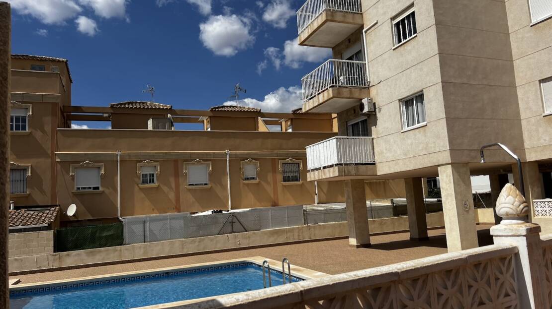 Selges fullt møblert, med hvitevarer og aircondition, klar til å flytte rett inn. Del av et boligkompleks med felles svømmebasseng.