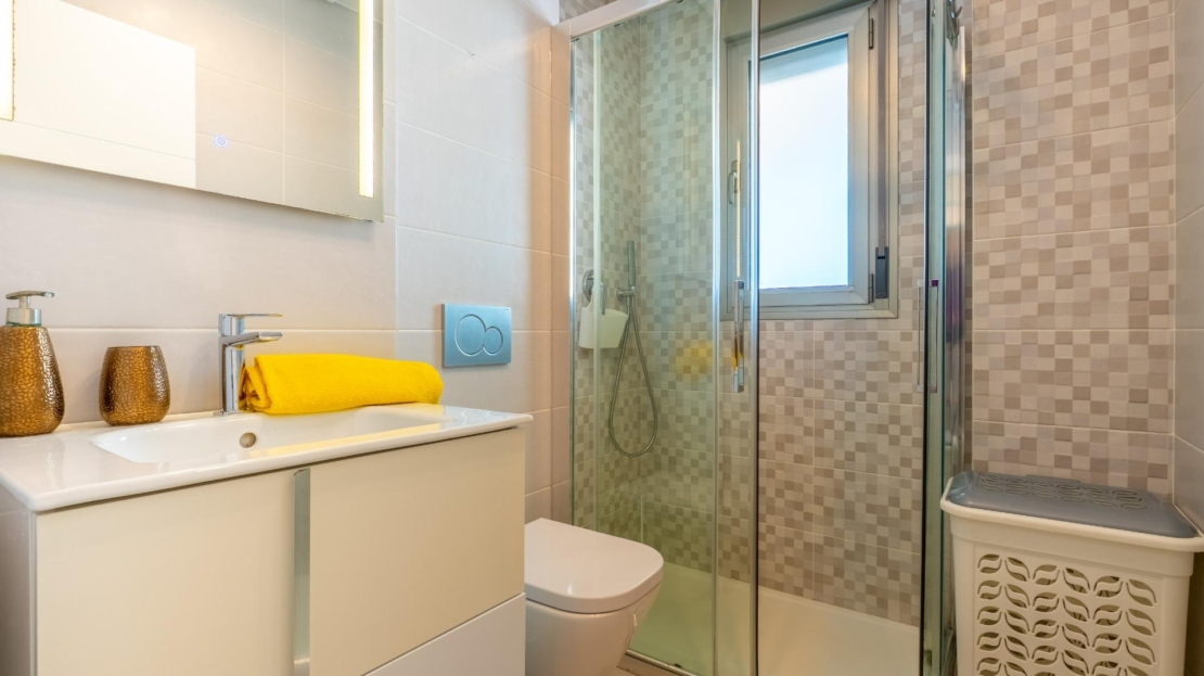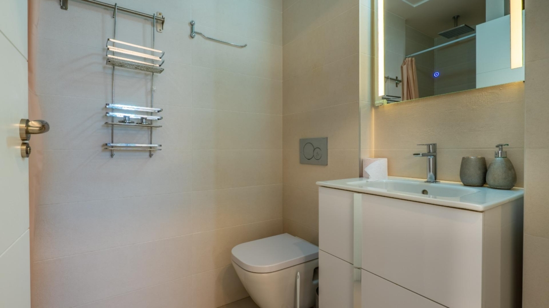 We present this modern apartment located in the exclusive Green Hills Residential, a luxurious recently built complex featuring a sauna, children’s areas, a gym, and a swimming pool surrounded by spacious green areas. This is a resale new-build property in excellent condition, ready to move into. Located in the prestigious area of Orihuela Costa, one of the most sought-after locations, it is ideal for enjoying the Mediterranean climate, tranquility, and an active, healthy lifestyle. The property stands out for its comfortable and functional layout, as well as its great brightness. One of its main highlights is its spacious terrace, which features a glazed area with air conditioning and a relaxation space, perfect for year-round use, as well as an open outdoor area with excellent sunny orientation, ideal for sunbathing at any time of the year. The apartment includes a modern, fully furnished living room, a fully equipped designer kitchen in light tones, 3 bedrooms with built-in wardrobes, and 2 full bathrooms. In addition, it comes with a parking space, providing convenience and security for your vehicle. Located in a quiet and safe area, it offers excellent proximity to all kinds of services: shops, supermarkets, schools, and leisure areas. Just a few minutes away is Zenia Boulevard, the largest shopping center in the area. Nearby beaches such as La Zenia and Playa Flamenca are also major attractions. For leisure and sports, the proximity to Villamartín Golf, one of the most renowned golf courses in the area, stands out, along with other sports facilities. With more than 300 days of sunshine per year and a mild climate, this location allows you to enjoy outdoor activities all year round, such as seaside walks, water sports, golf, and an active social life. An ideal option as a permanent residence, holiday home, or investment on the Costa Blanca. The price does not include notary fees, registration costs, or taxes, which may vary according to current regulations in the Valencian Community.