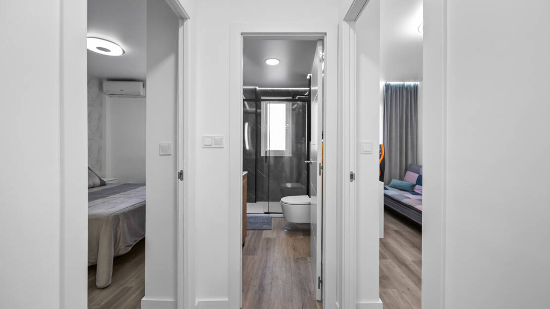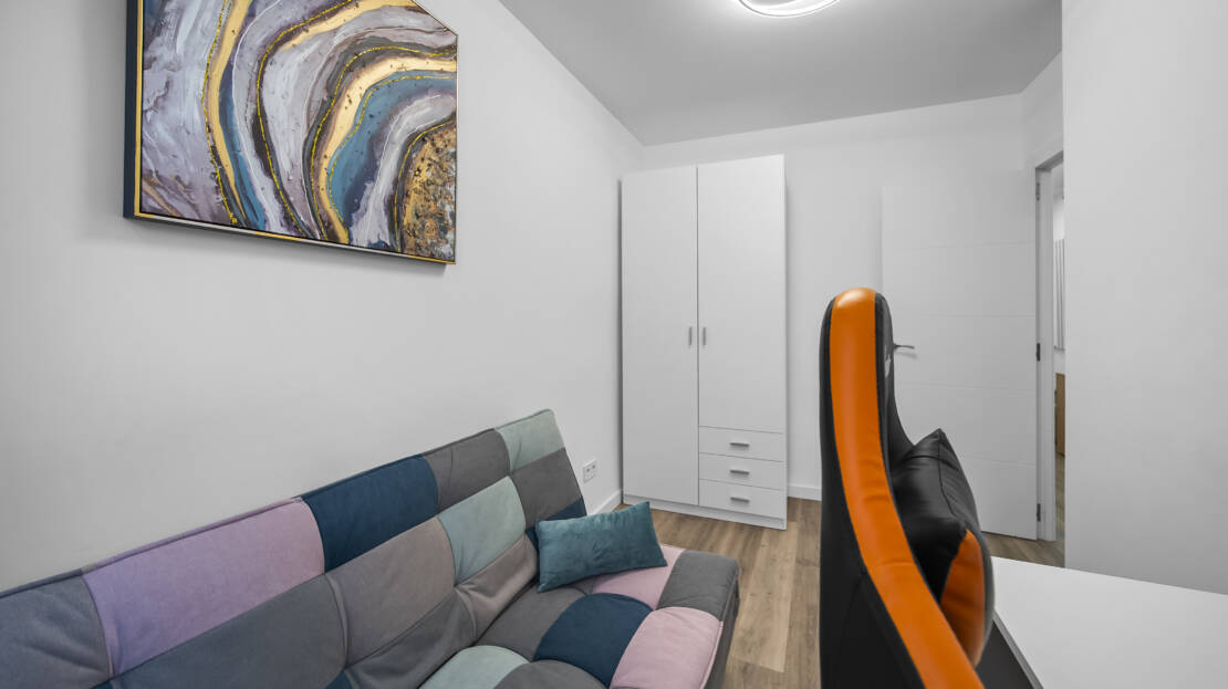 Fullstendig renovert i 2025, beliggende i tredje etasje i en bygning med heis, midt i sentrum av Torrevieja. Leiligheten har 3 soverom, 1 bad, terrasse med utsikt over en liten plass, og totalt 85 m² bebygd areal. Selges med moderne innredning inkludert i prisen.