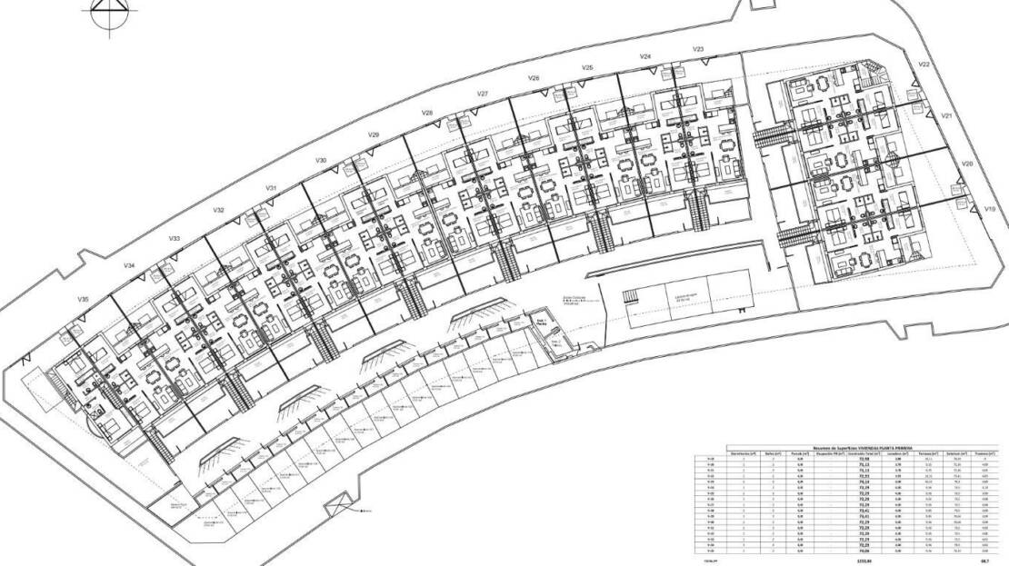Nybygd boligkompleks med moderne bungalower og rekkehus i Pilar de la Horadada.