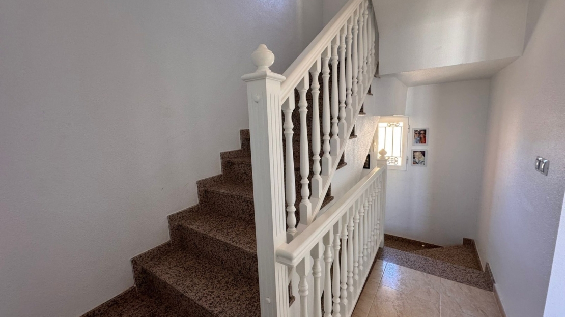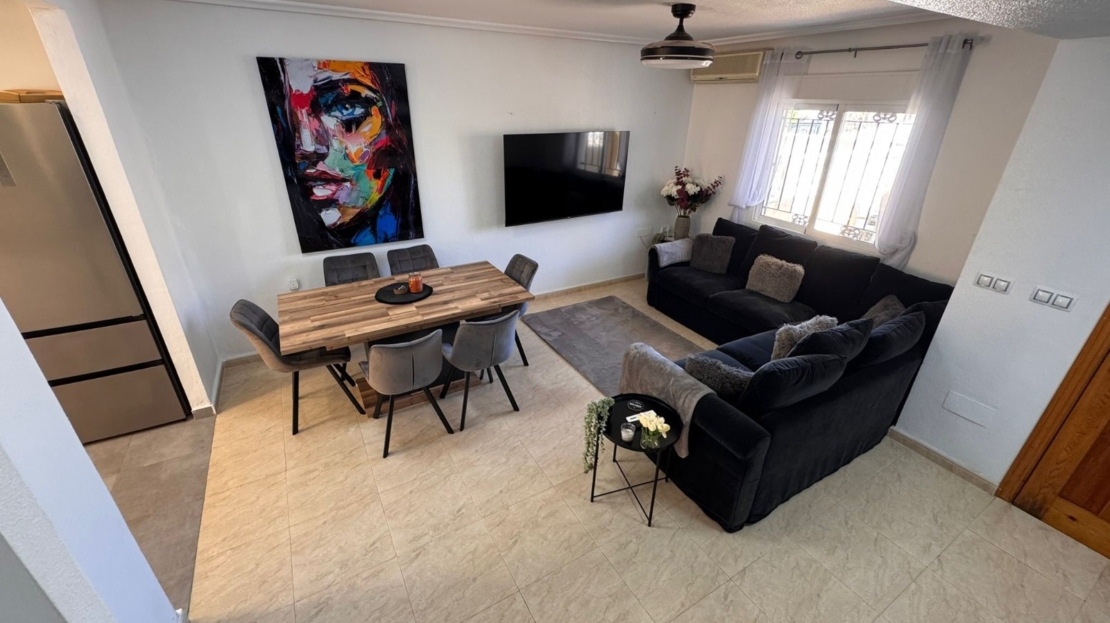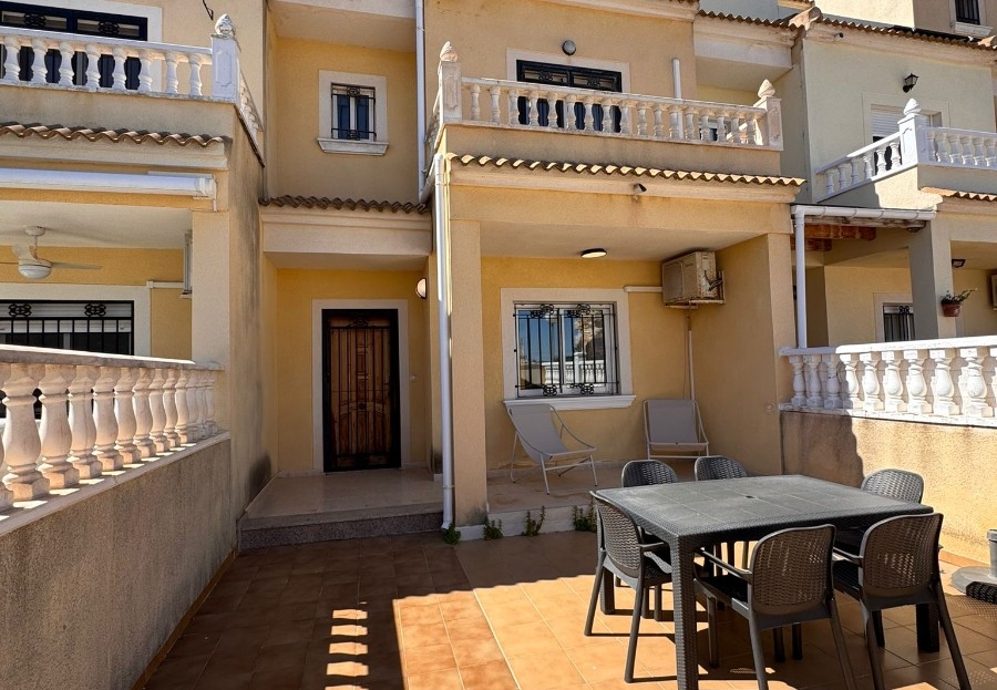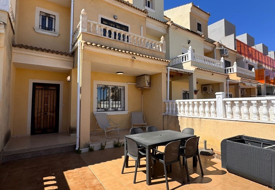 This charming property is tucked away in a lovely cul-de-sac, offering peace and privacy. Distributed over three levels, the home features three spacious bedrooms and two beautifully fitted bathrooms.The property has been recently upgraded with a brand-new, modern fitted kitchen and stylish bathrooms. All bedrooms come complete with fitted wardrobes and air conditioning for year-round comfort.There is a generously sized living room with direct access to a south-facing terrace, perfect for relaxing or entertaining, overlooking the front garden. The main bedroom also benefits from a Juliet-style balcony with views over the beautifully maintained communal gardens.The community itself is well kept and offers excellent amenities, including a large communal swimming pool, a tennis court, and a football pitch—ideal for keeping children active and entertained.Location is another highlight: the stunning beaches of Campoamor are just a 5-minute drive away. Within a 2-minute walk, you’ll find a selection of bars and restaurants, while a short 5-minute drive brings you to the vibrant Cabo Roig Strip, known for its lively atmosphere, night market, and wide range of dining and entertainment options.This is a must-see property that combines comfort, convenience, and an excellent location.