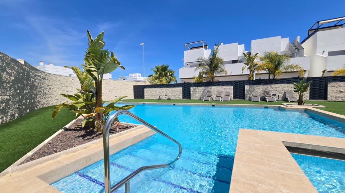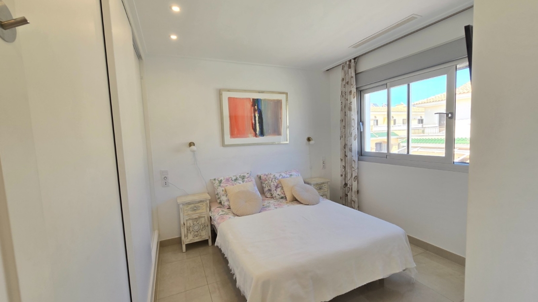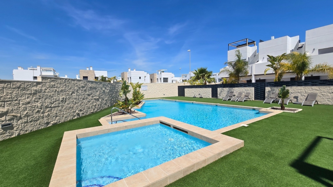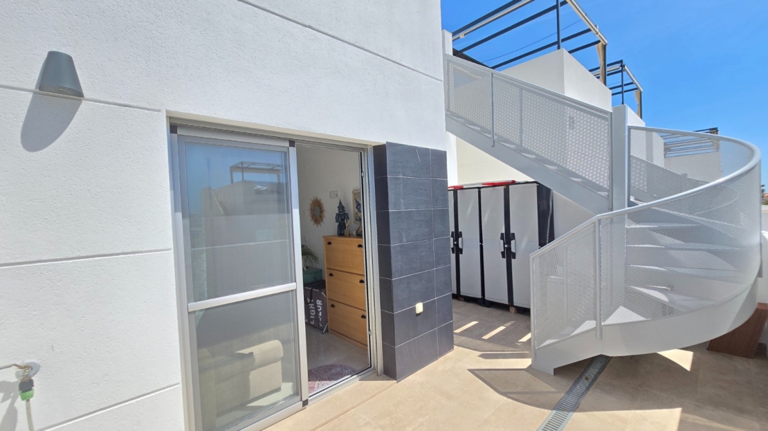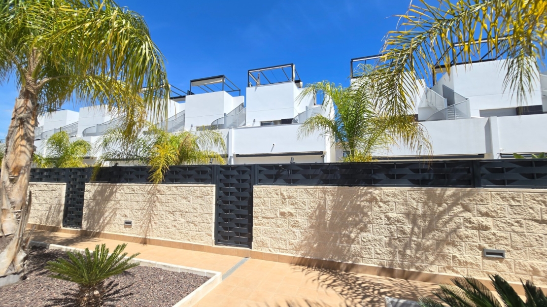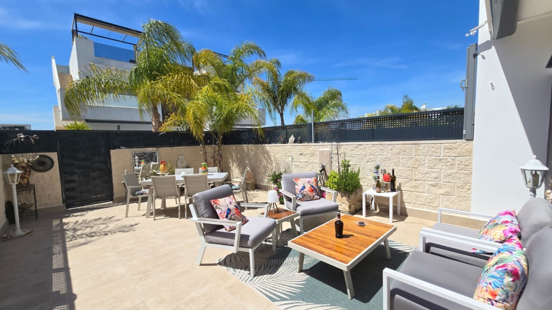 Discover this beautiful, recently built and modern home situated in the popular town of Ciudad Quesada. This immaculately maintained property is located in a lovely, gated residential complex and offers everything you need for comfortable and stylish living under the Spanish sun.The property features 3 spacious bedrooms and 2 modern bathrooms, ideal for both permanent living and holiday use. The open-plan kitchen flows seamlessly into the bright living area and is fitted with high-quality finishes, including a practical Quooker tap.Outside, you can enjoy a sunny garden and terrace, perfect for relaxing or entertaining guests. The property also features a spacious solarium where you can enjoy the sun all year round. The residential complex offers a well-maintained communal garden and a swimming pool, adding an extra touch of luxury and relaxation.The location is excellent: within walking distance you will find various shops, bars and restaurants, and the bustling town centre with all its amenities is within easy reach. Furthermore, you are just 10 km from the beautiful beaches of the Costa Blanca.The property features numerous extras that enhance living comfort, such as sun blinds, a water softener with a filter system, and air conditioning on both the upper and lower floors, which can be controlled separately.In short, a ready-to-move-in property in a prime location – ideal for those seeking comfort, quality and a carefree lifestyle in beautiful surroundings.SUMA: euros per year.Service charges: 660 euros/year.