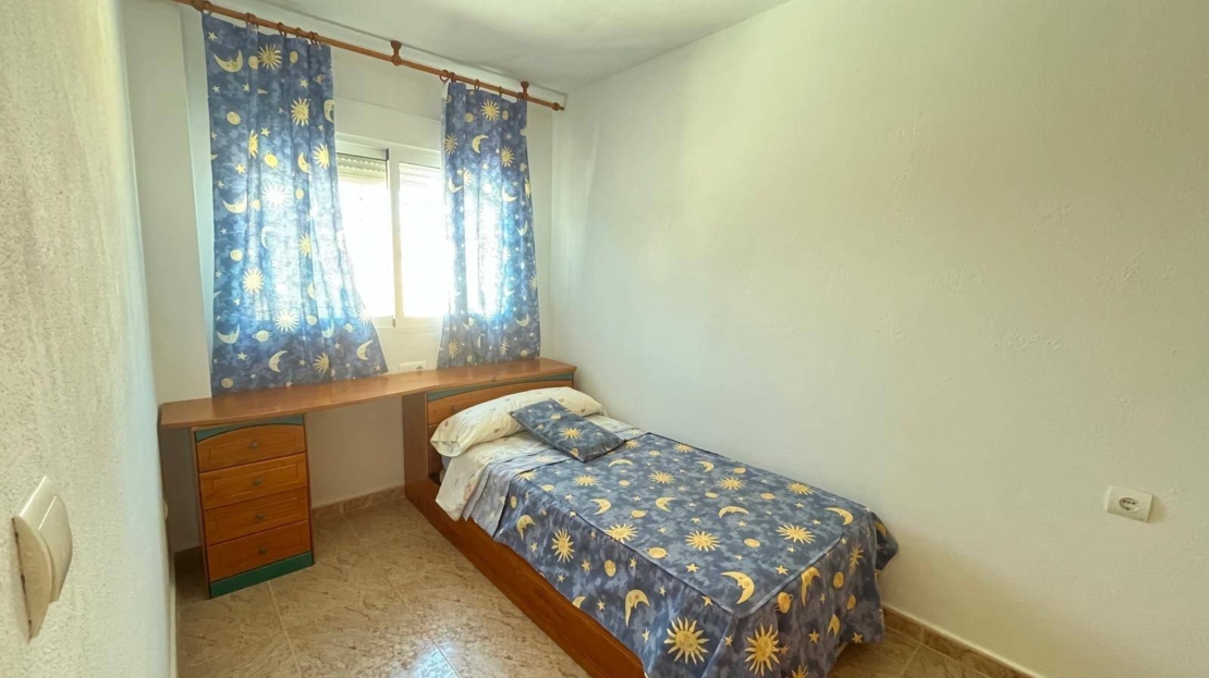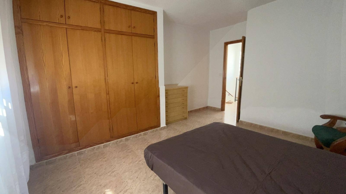 A beautiful semi-detached house for sale in Santiago de la Ribera, just 800 meters from the beach, in a quiet area surrounded by all amenities. The property, with 128 m² built, is distributed over two floors and stands out for its spaciousness, brightness, and east-facing orientation, which guarantees sun and natural light throughout the day. On the ground floor, you will find a cozy living room, an independent kitchen, two bedrooms, and a full bathroom, as well as access to a pleasant back patio, perfect for family gatherings. The upper floor features three additional bedrooms and a second full bathroom, offering the perfect space for large families or for those who wish to have rooms for guests, a study, or a leisure area. The house also has a charming front garden, is fully furnished, and ready to move into, with no need for renovations. Its location is unbeatable, close to playgrounds, restaurants, hospitals, supermarkets, and with easy access to the main thoroughfare, making it an ideal choice both as a permanent residence and as a holiday home. A unique opportunity to enjoy Mediterranean life in one of the most sought-after areas of the Mar Menor.