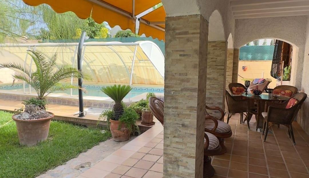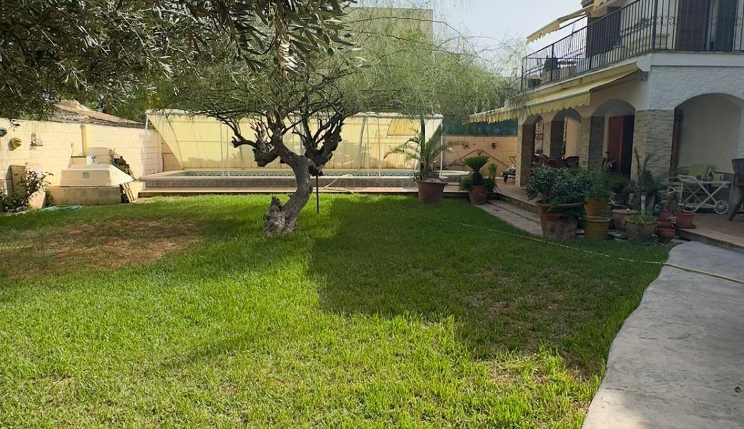 We present to you this magnificent fully detached home, located on a corner plot that ensures privacy and comfort. Ideal for those seeking quality of life, space, and a well-maintained natural environment. Moreover, it is located close to all amenities and just 700 m from Punta Prima beach! Upon entering the property, you are welcomed by a large 800 m² plot with a beautiful natural grass garden, perfectly maintained and featuring a stunning centuries-old olive tree. Enjoy the private saltwater pool, equipped with a winter cover, and relax in the outdoor jacuzzi. There is also a porch, chill-out area, and parking space for up to 3 vehicles. The house is distributed over two comfortable floors: Ground floor: Spacious and bright living-dining room with fireplace, perfect for a cozy winter atmosphere. Independent kitchen with pantry and direct access to the outside. This floor also includes two bedrooms and two additional rooms that can easily be adapted as bedrooms, an office, or a playroom. First floor: Two double bedrooms, both with access to a sunny terrace with open views. The spectacular master bedroom features a walk-in closet and en-suite bathroom. An additional full bathroom serves the floor. An ideal property both as a permanent residence or second home, ready to move into, surrounded by nature and equipped with all comforts to enjoy the outdoor space and tranquility to the fullest.