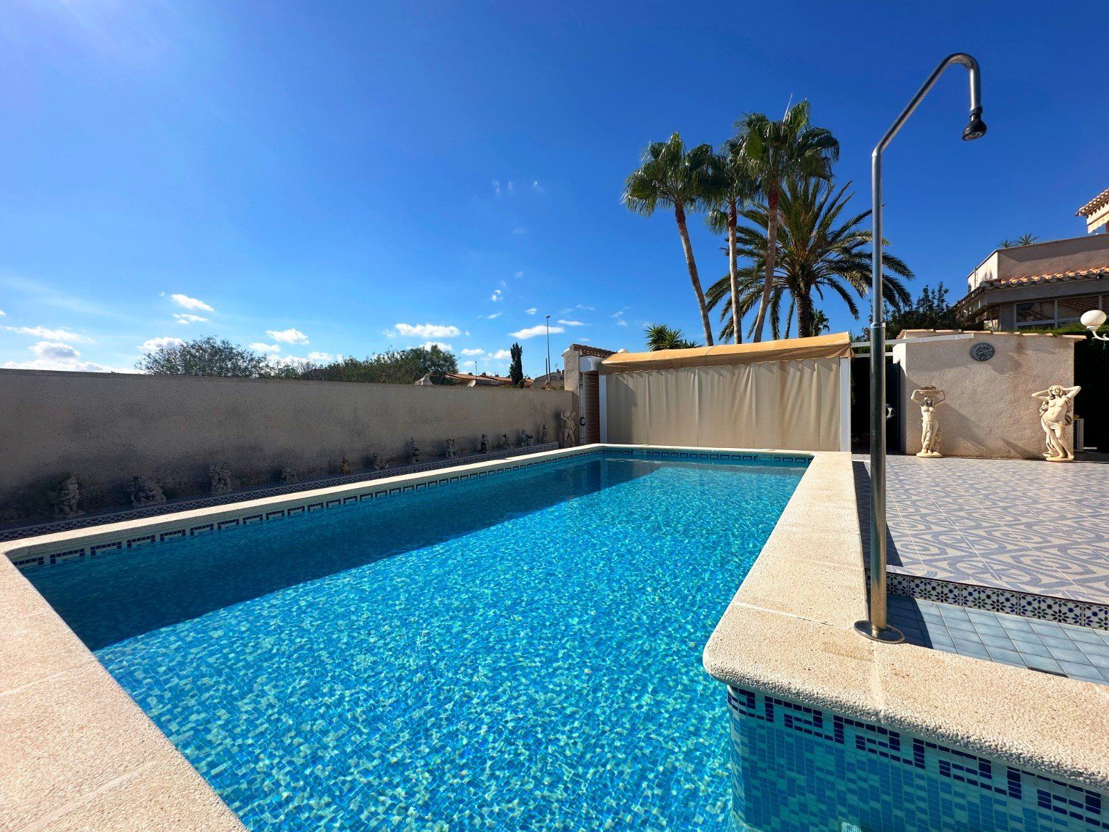 This Mediterranean-style villa offers the ultimate coastal lifestyle, located only minutes away from the golden beaches of the Mediterranean, the prestigious Villamartín Golf Course, and the famous La Zenia Boulevard. Orihuela Costa has it all: relaxation, adventure, or a mix of both.