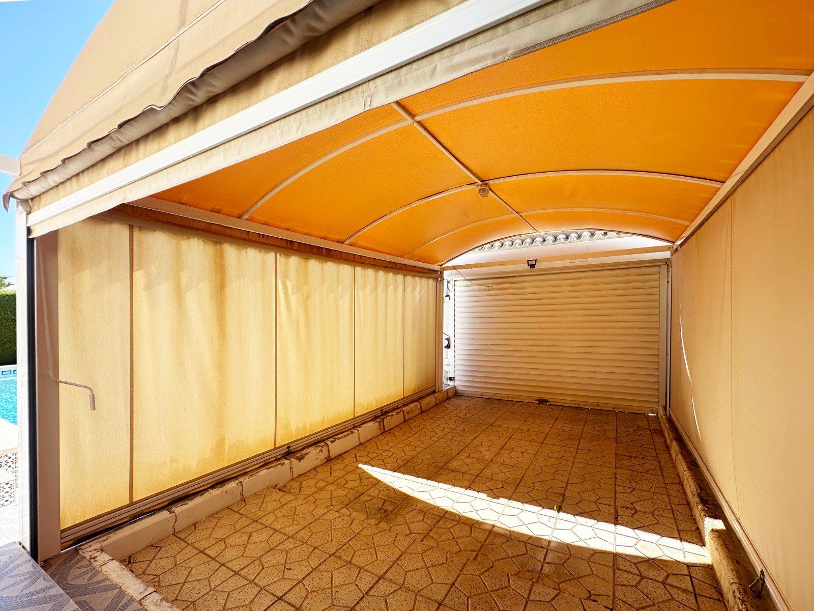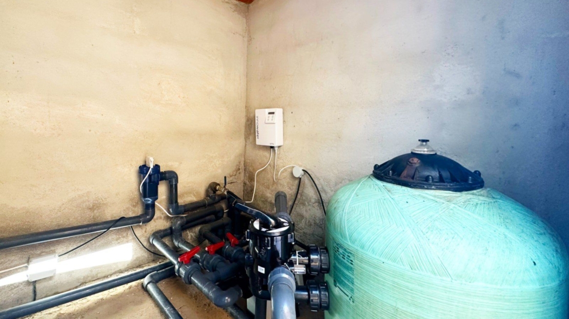 From the spacious living room and panoramic lounge area, with a bespoke snooker and dining table, american size fridge - freezer where you can enjoy a charming view of the pool and garden. This villa also includes many extras and a number of exceptional amenities: ducted air conditioning for personalized comfort, built-in wardrobes that optimize space, and additional in the back garden for extra storage, you enjoy a practical garden shed for convenience.