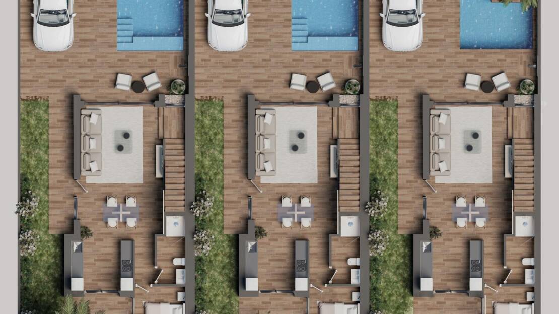Hver villa ligger på en privat tomt på ca. 200 kvadratmeter, noe som gir rikelig med plass til utendørs opphold og avslapning. Eiendommen har et privat basseng, perfekt for å nyte varme middelhavsdager, og et eget parkeringsområde. Et stort privat solarium gir en vakker plass for soling, underholdning eller bare for å nyte de fredelige omgivelsene. Disse villaene tilbyr en livsstil av høy kvalitet med førsteklasses fasiliteter og moderne bekvemmeligheter i et av Spanias mest ettertraktede kystområder.