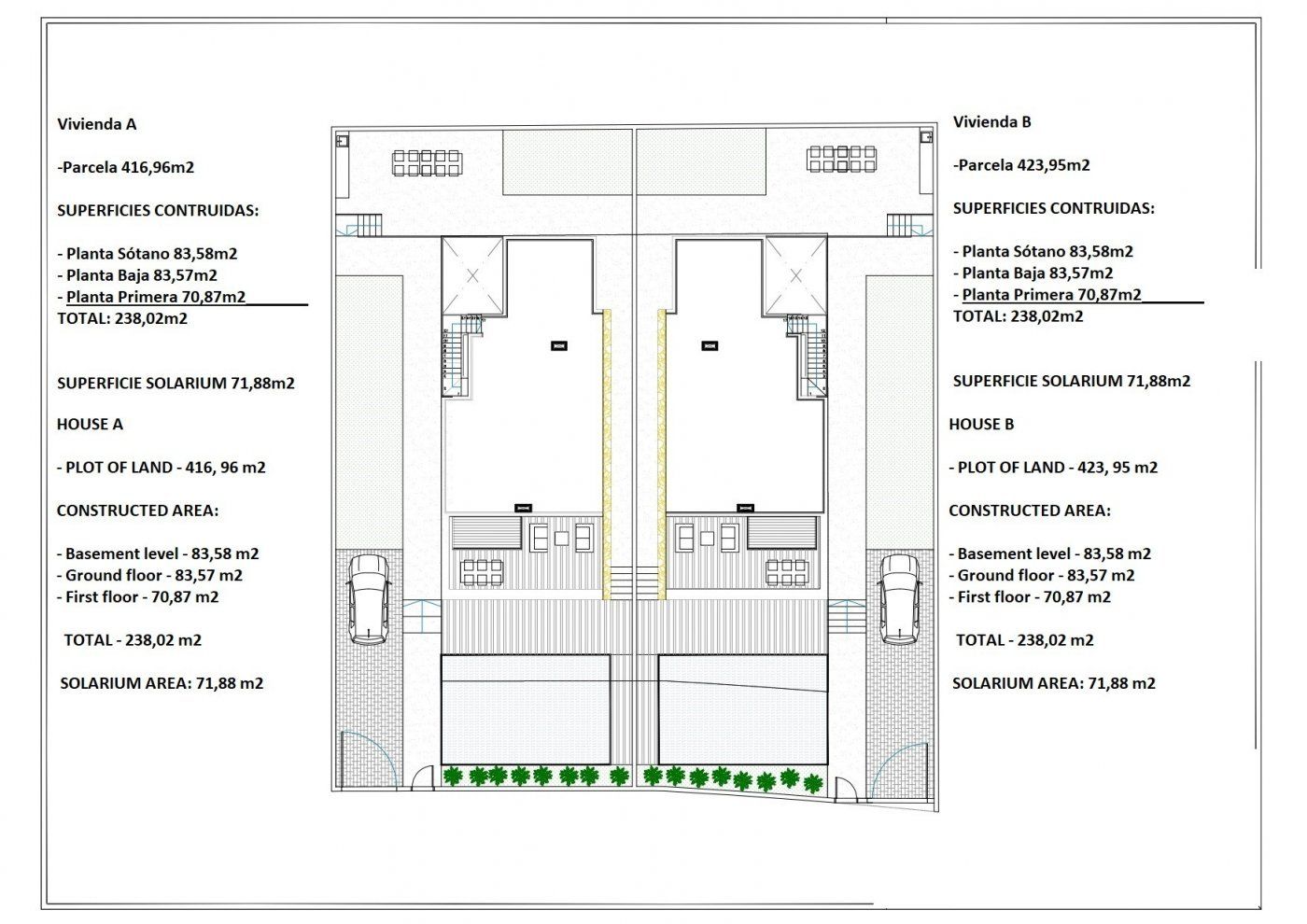 Villas har 4 soverom, 4 bad, åpen kjøkkenløsning med stue, garderober, privat hage med basseng og parkeringsplass utenfor veien, privat solarium og kjeller.