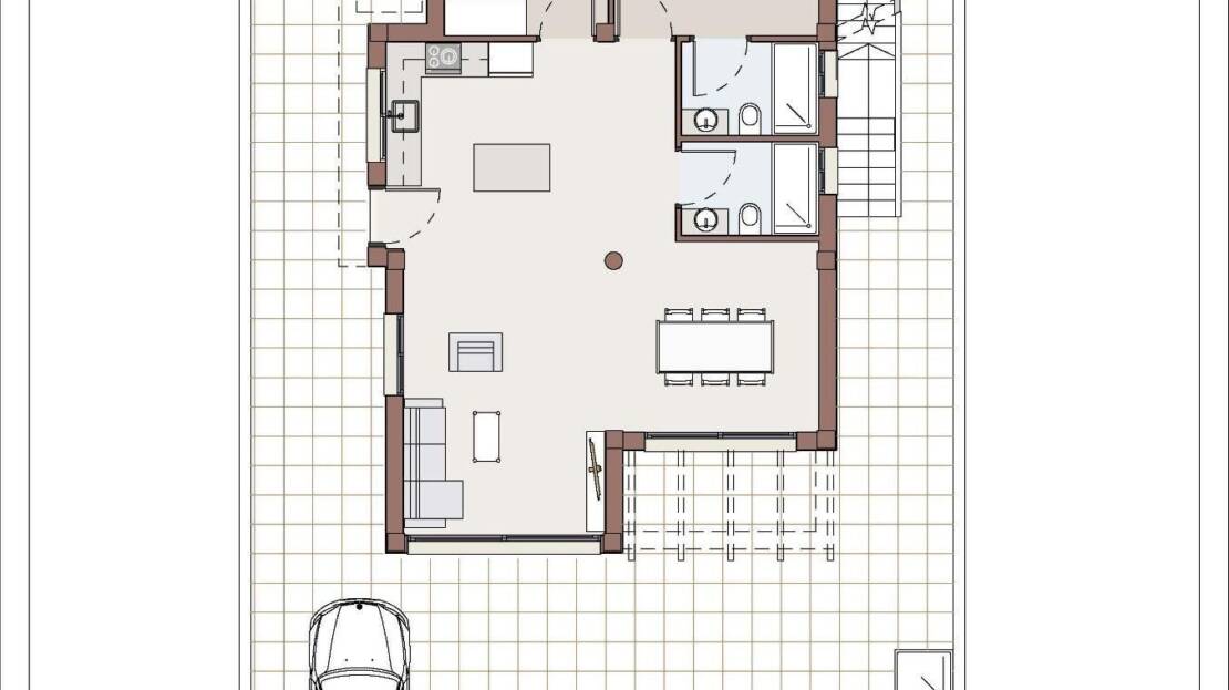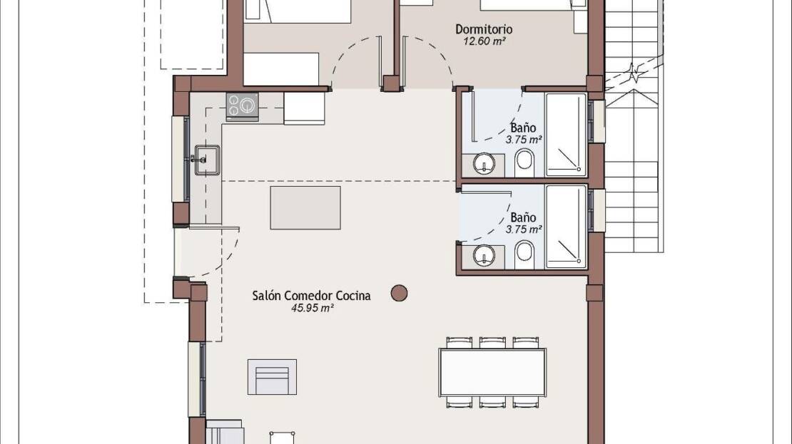 Nybygg bolig med uavhengige villaer å velge mellom to modeller: dobbel høyde, med tre soverom og tre bad og 2/3 soverom med to bad, alt i én etasje.