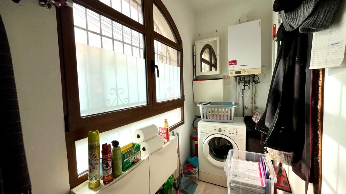 Discover this spectacular 4-bedroom independent villa situated on a 900 m² plot near the well known Villamartín Golf Course. Beautifully renovated, it combines traditional charm with modern comforts, making it ideal for families, golf enthusiasts, and nature lovers.The property is surrounded by a lush garden with an electric gate, drive way, pool, jacuzzi, barbecue area, and a shaded pergola.Inside, the spacious living-dining room with a wood-burning fireplace connects to a fully equipped kitchen and a terrace with a built in barbecue, offering stunning golf course views. Along with its spacious solarium provides 360° panoramic views.All 4 bedrooms are installed with air conditioning, one bedroom currently used as a dressing room with direct garden access. The main bathroom includes a double sink, bathtub, and toilet area.With central heating, ample storage, and a tourist license, this property is a unique opportunity to enjoy or invest in Villamartín.