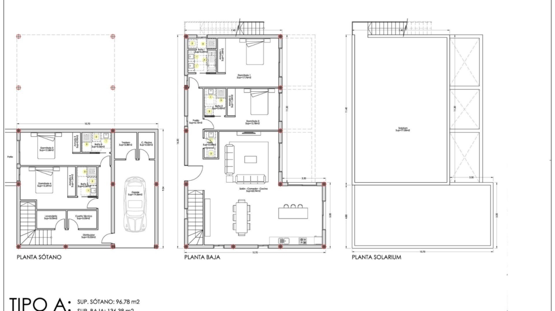 Første etasje har ett eller to ekstra soverom med eget bad, gjestetoalett og et åpent kjøkken som er koblet til stue og spisestue, med direkte tilgang til terrassen og bassenget. Hver eiendom har et solarium på taket, som tilbyr panoramautsikt over fjellene eller havet og muligheten til å installere et boblebad.