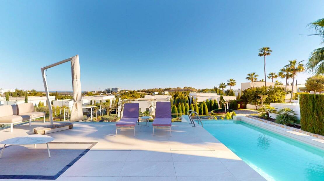 Denne imponerende sørvendte villaen ligger i det eksklusive Limonero-området, med direkte tilgang til den prisbelønte golfbanen. På en tomt på 697 m² tilbyr boligen 260 m² gjennomtenkt designet boareal, et solarium på 45 m² og et elegant privat basseng som strekker seg langs hele huset.