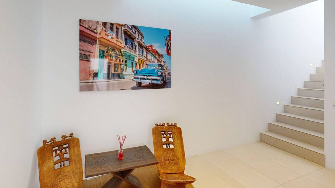 Hovedetasjen har en åpen stue- og spisestue med et fullt utstyrt designkjøkken, eksklusive materialvalg og store skyvevinduer som skaper en sømløs overgang mellom inne og ute. En stilfull glassbro leder til hovedsoverommet med privat terrasse, innebygde garderober og et luksuriøst bad med jacuzzi og romslig dusj.