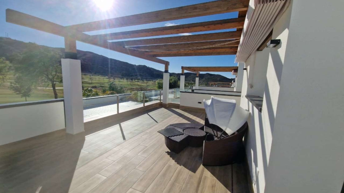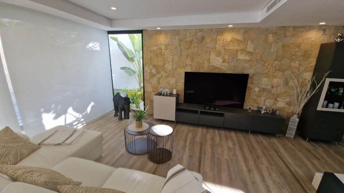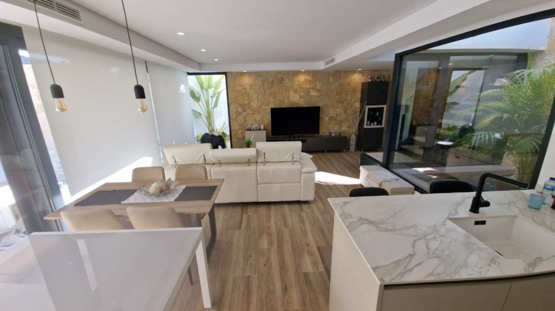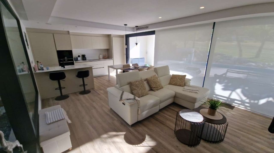 Discover this stunning resale villa located at the exclusive Font del Llop Golf Resort in Monforte del Cid. A unique opportunity to live in a prime location with breathtaking views over the golf course and the surrounding natural landscape. This stylish villa offers 3 spacious bedrooms and 3 modern bathrooms and has been designed with comfort, light, and space as top priorities. The property features multiple terraces, a sunny solarium, and a beautiful garden with private swimming pool — perfect for enjoying the Mediterranean outdoor lifestyle all year round. Thanks to its frontline golf position, you will enjoy open green views and a particularly peaceful living environment every day. The villa is sold fully furnished, making it ready to move into immediately. Beneath the property there is also a very spacious basement level that can be customised entirely to your needs: additional bedrooms, a gym, hobby room, office, or relaxation area… the possibilities are endless. Font del Llop is an exclusive and well-maintained golf resort ideally located in the heart of the Alicante province. Alicante International Airport and the AVE high-speed train station are just 20 minutes away. The charming cities of Alicante and Elche are also easily accessible and well worth visiting. For sun and sea lovers, the beautiful natural beaches of Arenales, Alicante, and Urbanova are within short distance. Font del Llop is known as a prestigious golf course where it is a dream to live all year round, enjoying the mild Mediterranean climate, tranquility, and a high-quality lifestyle. An exceptional property for those seeking space, comfort, and a unique golf-front location. Feel free to contact us for more information or to arrange a viewing. Price subject to availability.