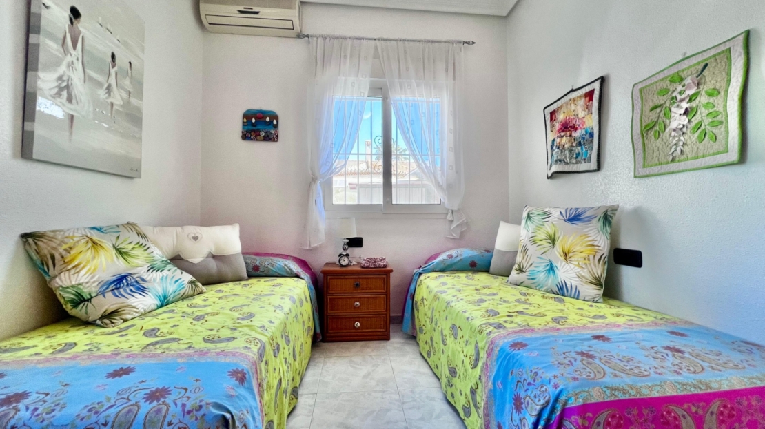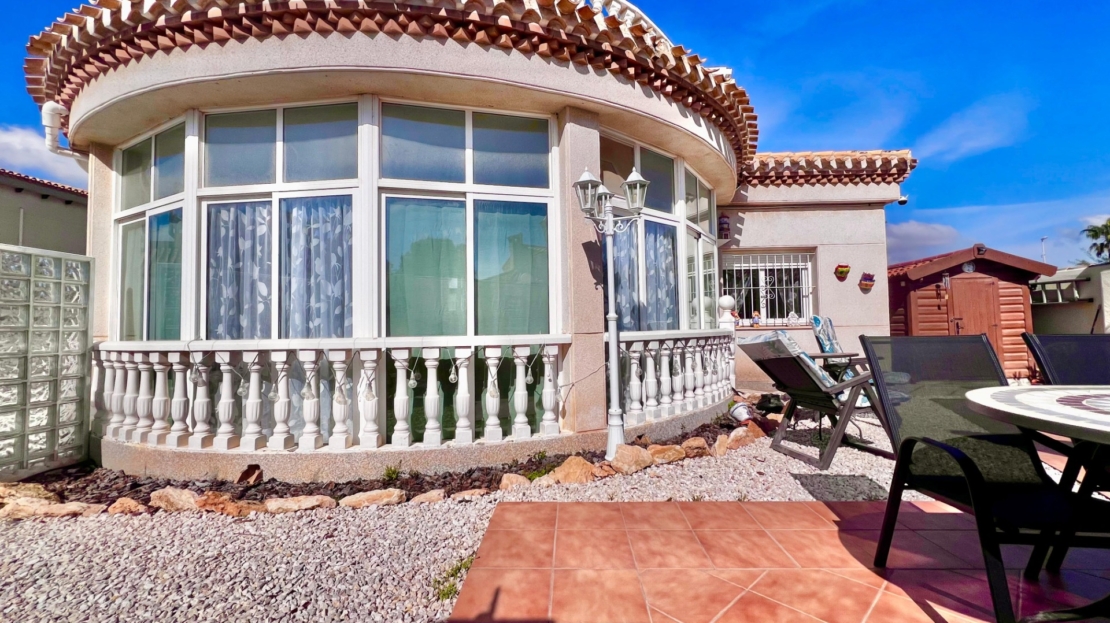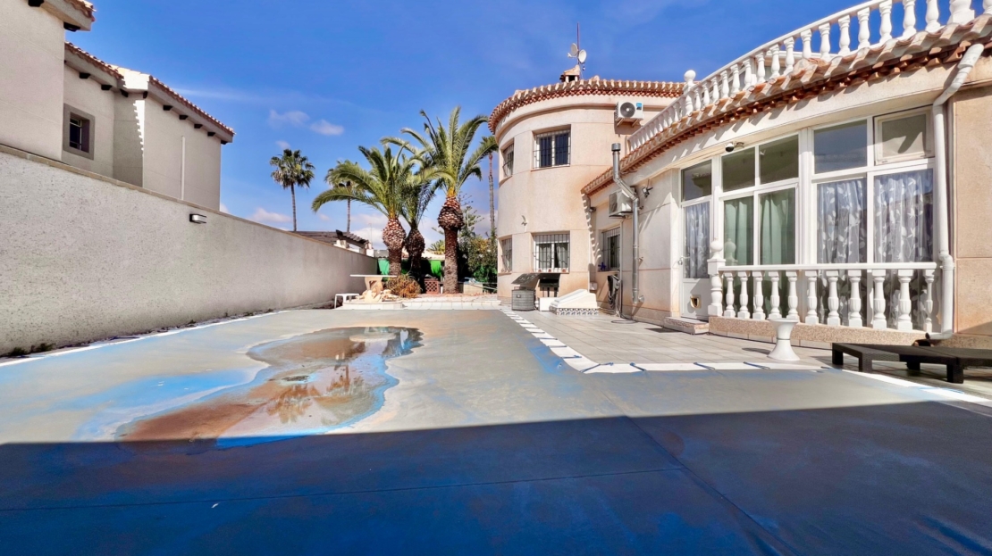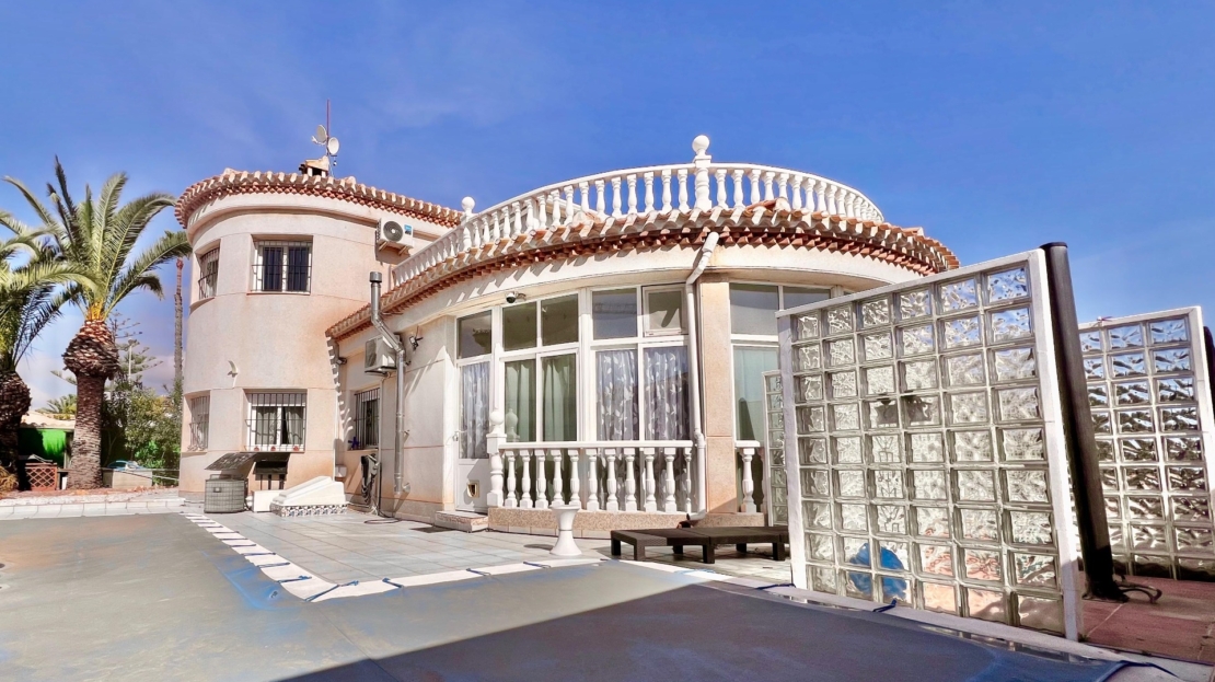 Villa independiente en esquina en Playa Flamenca con amplia parcela y piscina privada~~Presentamos esta fantástica villa independiente en esquina ubicada en una de las zonas más demandadas de Playa Flamenca. La vivienda se asienta sobre una amplia parcela de 500 m2 y cuenta con 196 m2 construidos, ofreciendo espacio, privacidad y comodidad tanto para residencia habitual como para disfrutar de vacaciones.~~La propiedad dispone de una piscina privada de 36 m2 rodeada de un agradable jardín con árboles frutales, ideal para disfrutar del clima mediterráneo durante todo el año gracias a su excelente orientación sur.~~La vivienda se distribuye en 4 dormitorios y 2 baños. En la primera planta encontramos dos dormitorios y un baño completo, mientras que en la planta superior se ubican otros dos dormitorios, uno de ellos con baño en suite. La casa cuenta además con aire acondicionado, chimenea de pellets, cocina de estilo francés, despensa y galería, así como varios trasteros que aportan un práctico espacio de almacenamiento.~~La propiedad se vende completamente amueblada y se encuentra en buen estado de conservación. En cuanto al aparcamiento, dispone de zona de parking cubierta dentro de la parcela, además de plazas de aparcamiento disponibles dentro del residencial.~~Ubicada a tan solo 1 km de la playa y junto al centro comercial Zenia Boulevard, la vivienda se encuentra rodeada de todos los servicios necesarios: supermercados, restaurantes, ocio, transporte y zonas comerciales. Playa Flamenca es una zona muy valorada de Orihuela Costa, conocida por su ambiente internacional, sus bonitas playas y su excelente oferta de servicios durante todo el año.~~Una oportunidad ideal para quienes buscan espacio, privacidad y una ubicación privilegiada cerca del mar.
