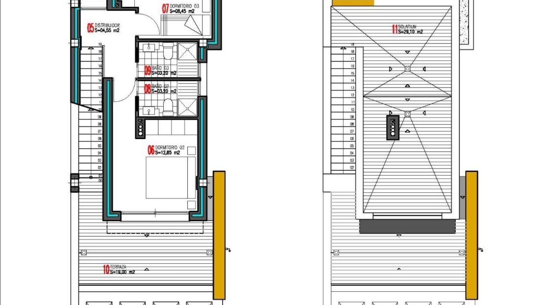 Villaene har 3 soverom og 3 bad fordelt på to etasjer, pluss et privat solarium. Hver villa har et privat svømmebasseng og gulvvarme drevet av aerotermisk energi, som gir komfort og energieffektivitet hele året. Disse boligene er ideelle for de som søker privatliv, plass og en førsteklasses livsstil nær stranden.