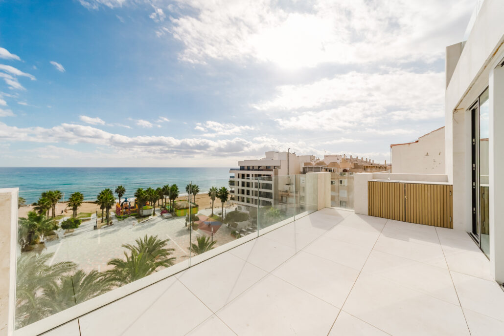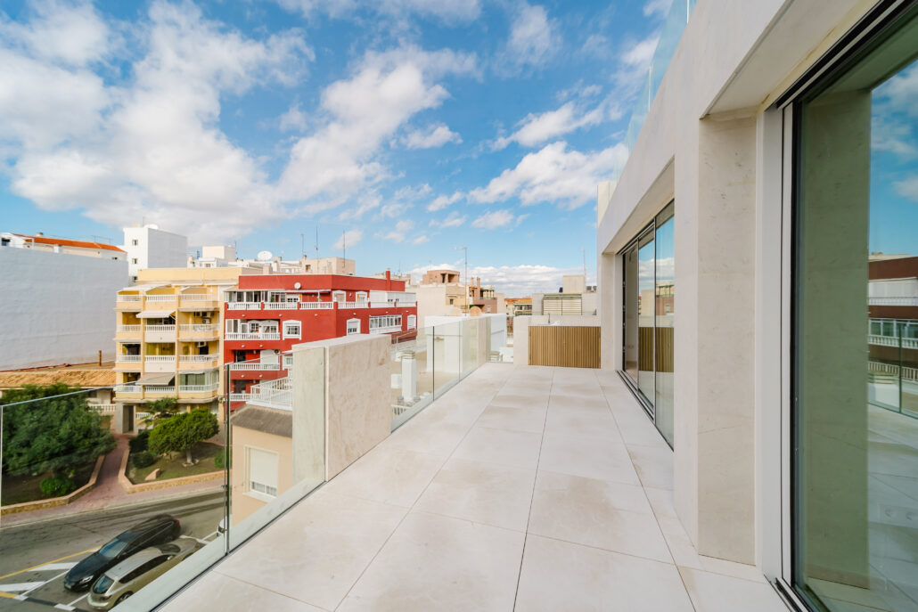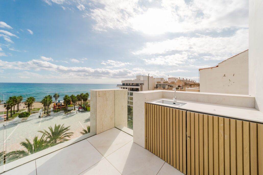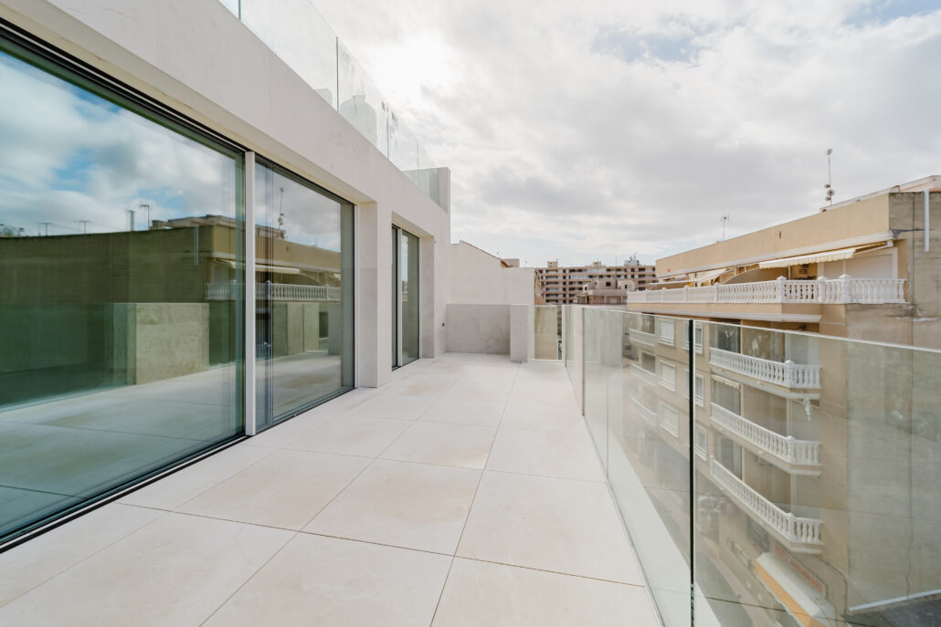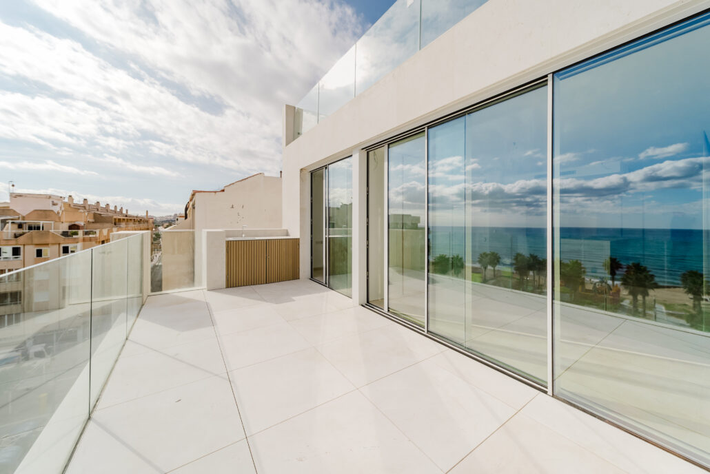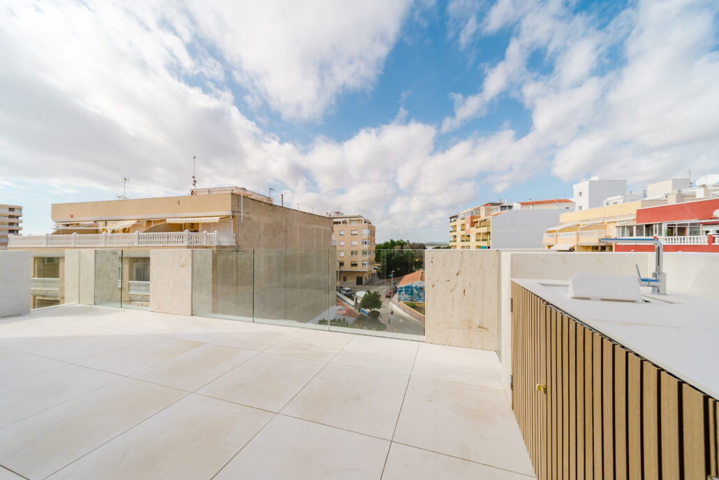 La Mata Plaza consists of 14 apartments, all with spacious terraces, two commercial units on the ground floor, and 11 underground parking spaces. The project also includes a spacious solarium with westward orientation. It features a jacuzzi and spectacular views of the La Mata Salt Lagoon. 10 of the apartments have direct views of the beautiful Mediterranean Sea, the beach, and the main square of the village. These apartments, Types A and B, have three bedrooms and two bathrooms. The Type A and B penthouses have a private 80 m² solarium with panoramic views of the sea and lagoon. The 4 Type C apartments are west-facing with views towards the La Mata Lagoon, with two bedrooms and one or two bathrooms. 11 parking spaces are available in the building’s basement.