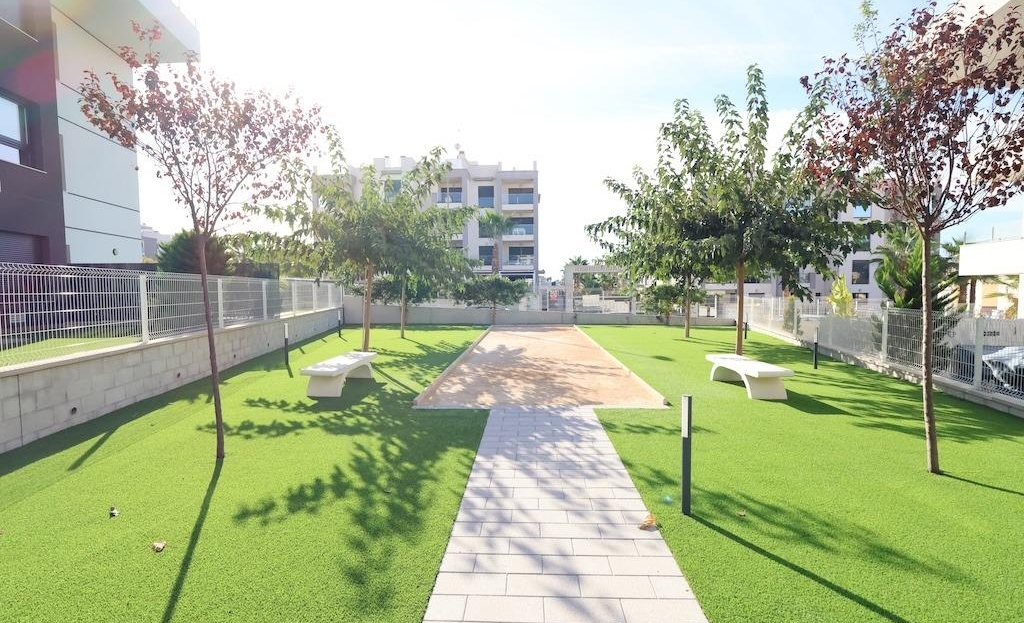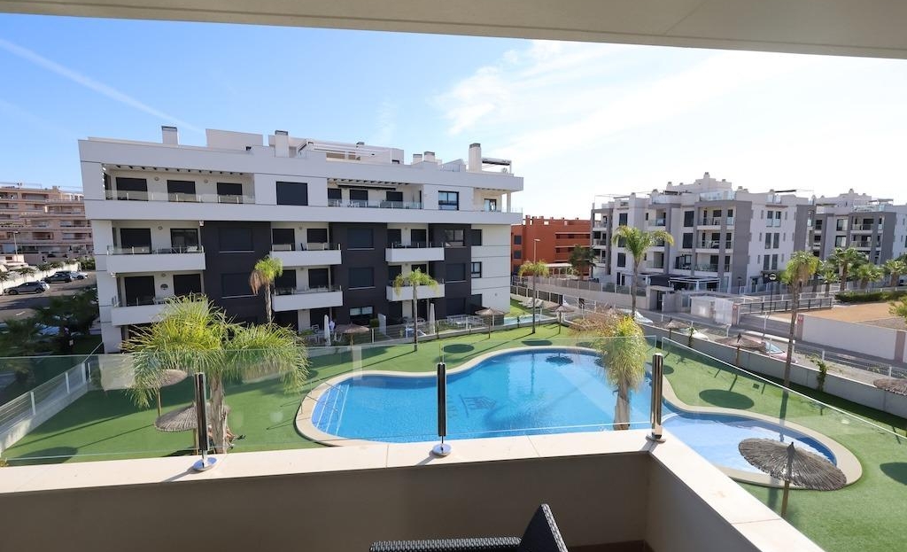 Modern & Move-In Ready Apartment in Villamartin – Costa Blanca South. . Located in the highly sought-after area of Villamartin on the Costa Blanca South, this immaculately presented second-floor apartment with two bedrooms and two bathrooms offers a luxurious living experience in a central location.. . The property is part of the popular Residential Valentino Golf 3, a modern complex featuring a contemporary design, spacious terraces, and a smart layout that ensures natural light and comfort all year round.. . The communal facilities include a large swimming pool with jacuzzi, extensive green areas, a playground, and a gym.. . Features of Valentino Golf 3. . Close to the town centre, golf courses and the beach. . Spacious terraces. . Swimming pool and jacuzzi. . Gym and playground. . Private parking for each apartment. . Layout & Comfort. . Two spacious bedrooms with built-in wardrobes. . Modern open kitchen, including dishwasher and washing machine in the utility area on the balcony. . Living room with direct access to a sunny terrace overlooking the communal pool. . Extras. . Central air conditioning and heating. . Fully furnished and equipped (excluding personal items). . Ideally located just a 15-minute walk from the lively Villamartin Plaza, offering a wide choice of bars and restaurants. The charming Villamartin clubhouse, decorated with traditional Spanish tiles and featuring a sun terrace, is also within easy walking distance.. . Within a short drive, you’ll reach the impressive Zenia Boulevard shopping centre and the beautiful sandy beaches of Orihuela Costa, including La Zenia, Cabo Roig, Punta Prima and Playa Flamenca.. . Golf lovers will appreciate the proximity to the top courses Villamartin, Campoamor, Las Ramblas and Las Colinas, while families can enjoy a fun day out at Greenlands Adventure Golf, located nearby.
