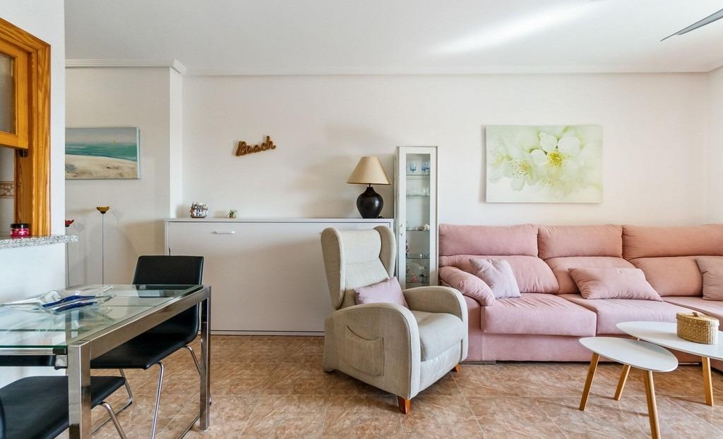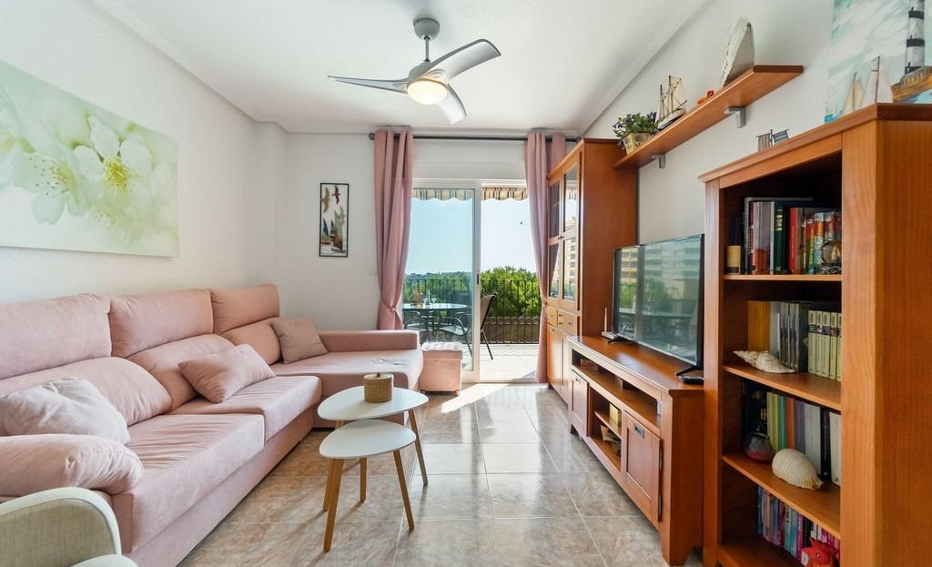 Beautiful apartment located in one of the most beautiful corners of the Costa Blanca, Dehesa de Campoamor, surrounded by pine forests and within walking distance of the beach. The apartment is located on the second floor, facing northeast. It consists of two double bedrooms and a bathroom, a living-dining room, a semi-separate kitchen with a utility room, and a terrace with beautiful views of the surrounding area. It is sold furnished. The price includes a parking space in the underground garage. The building has an elevator. It is less than a kilometer from the beach, 5 minutes from the supermarket, pharmacy, and restaurants. It is a perfect location for year-round living and vacations.
